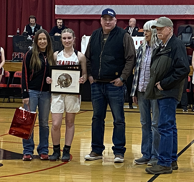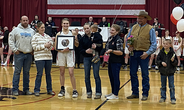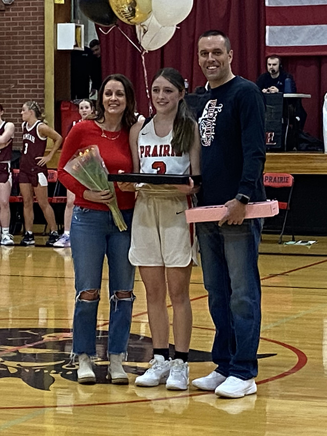 Aubree Rehder was honored on Senior Night last Thursday and is shown with her parents. Photo by Matt Elven. Click on the
