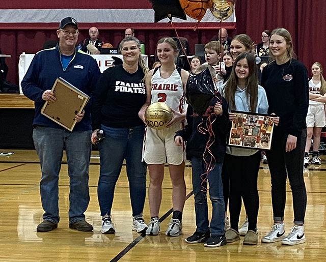 presentations was a basketball commemorating her scoring 1000 points.