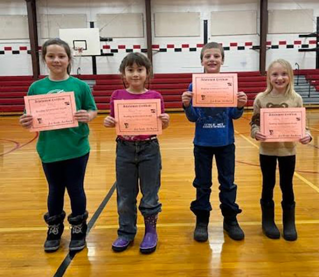 Top 2nd grade AR readers from left are: Kylee Bixby, Rebecca Riener, Jackson Ross, and Aubrey Westhoff. Photo by Jon Rehder. Click