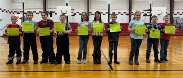 assembly. From left are: Blake Chandler, Lane Witters, Sophie Latimer,