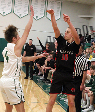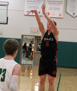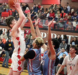 then hit another 3 and Forsmann scored inside for an 8-5 lead.After a Potlatch basket, Forsmann scored a putback to make it 10-7. Potlatch then outscored Prairie 2-6 the rest of the quarter to take a 12-13 lead. Forsmann hit another putback for Prairie’s points. Forsmann made 2 free throws to open the second quarter and Gehring followed with hit first basket of the game after making a steal. Potlatch regained the lead with a 0-5 run but Prairie tied it on 2 free throws by Gehring. A lay-up by Forsmann put Prairie back on top and Gehring made it 23-18 with a 3. Potlatch scored 2 free throws and a basket to get back within 1 but Prairie then closed out the half with a 7-0 run. Shears scored a putback and Gehring drove full-court for a lay-up. Forsmann then made it 30-22 at the half by converting a 3-point play. Potlatch open the second half scoring but Wemhoff answered with a perimeter shot. Potlatch then scored a 3 but Prairie answered with a 7-0 run for a 12 point lead. Gehring drove for a lay-up, Shears scored off a feed from Schwartz and Gehring hit a 3 to make it 39-27. Potlatch came back with 5 straight points. Shears answered with a lay-up. After another Potlatch basket, Gehring hit his third 3 of the game to make it 44-34. Potlatch answered with a buzzer-beating 3 to make it 44-37 after 3 quarters. The Loggers scored a free throw to start the fourth quarter but Shears answered with a 3 to push the lead to 9. A Potlatch basket was answered with 2 free throws by Shears. Potlatch scored a free throw with 5:05 left then Prairie went on an 8-0 run to take their biggest lead of the game. Shears scored a lay-up and then his fourth 3 of the game. Forsmann converted a 3-point play to make it 57-41 with 2:57 left. Potlatch answered with 7 straight to get back within 9 at 57-48. Shears broke the run with a basket but Potlatch scored a basket and then a free throw to get within 8 at 59-51 with 1:10 left. Shears made the second of 2 free throws for a 9 point lead but Potlatch answered with a 3 to get back within 6 with 25 seconds left. Schwartz was fouled and made 2 free throws for a 62-54 lead with 21 seconds left. Potlatch scored the game’s final points with just 2 seconds left. In addition to the big games by Shears and Gehring, Forsmann had a double-double with 16 points and 13 rebounds. Wemhoff and Schwartz scored 2 each. Prairie had a 33-20 advantage on the boards. Shears had 6 steals and 4 assists. Wemhoff had 5 assists and Gehring had 4. Prairie was 21 for 38 from the field, 55%, and 10 for 13 at the line, 77%. Potlatch was 20 for 51 from the field, 39%, and 9 for 13 at the line, 69%. Prairie ends their regular season with a record of 11-8, 5-7 in league play. They wound up tied for fourth with Lapwai but Lapwai got the #4 seed due to beating Prairie twice. In the JV game Prairie built a big lead and then had to hang on for a 41-34 win. Prairie jumped out to a 6-0 lead as Quintal, VonBargen and Enneking each scored a basket. After 4 points by Potlatch, Armbrust made 2 free throws and Quintal hit a 3 as Prairie took an 11-6 lead. Potlatch made it 11-9 before VonBargen closed out the quarter with a basket to make it 13-9. Prairie dominated in the second quarter. They started it with an 11-0 run. Rehder had two 3’s and a lay-up in the run while Enneking converted a 3-point play as Prairie took a 24-9 lead. After a Potlatch basket, Quintal, Matthew Jones and Weber each scored to make it 30-11. Potlatch scored a free throw right before half to make it 30-12 at the break. Weber started the second half scoring with a free throw then Potlatch scored 5 straight. Secrest scored on a drive to the hoop but Potlatch then hit back-to-back 3’s to cut the lead to 10 at 33-23. Enneking scored a basket on an inbounds play then Potlatch closed out the third quarter with a 3 to make it 35-26. Potlatch scored the first 8 points of the fourth quarter on two 3’s and a lay-up to cut the lead to just 1 at 35-34 with 4:10 to play. Fortunately for the Pirates, the Loggers hot shooting went ice-cold after that. Enneking scored a putback to make it 37-34. Rehder scored a lay-up and then scord the final 2 points of the game at the free throw line. Rehder wound up with 12 points to lead the team. Enneking scored 9 with Quintal scoring 7, VonBargen 4, Weber 3 and Jones, Armbrust and Secrest 2 each. Prairie had a 56-48 edge on the boards led by Quintal, Rehder and Secrest with 10 each. Quintal and Armbrust had 2 steals each while Quintal led in assists with 5. Prairie was 16 for 59 from the field, 27%, and 6 for 16 at the line, 38%. Potlatch was 11 for 57 from the field, 19%, and 5 for 24 at the line, 21%. Prairie 12 18 14 18 -62 Potlatch 13 9 15 19 -56 Prairie-Wemhoff 1-4, 0-0, 2; Shears 9-11, 3-4, 25; Gehring 6-10, 2-2, 17; Schwartz 0-3, 2-2, 2; Forsmann 6-10, 4-6, 16; VonBargen 0-1, 0-0, 0. 3-pointers-Shears 4, Gehring 3. Potlatch-C. Lovell 5-16, 0-0, 13; Morris 2-7, 0-0, 6; Mitchell 3-3, 5-6, 11; Chambers 2-5, 2-3, 6; E. Lovell 8-20, 2-4, 20; Chittick 0-0, 0-0, 0; Redmon 0-0, 0-0, 0. 3-pointers-C. Lovell 3, Morris 2, E. Lovell 2. ![]()