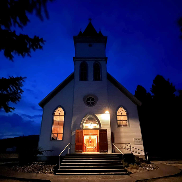 Holy Cross Chapel at twilight. The annual dinner to benefit upkeep for