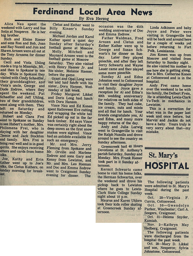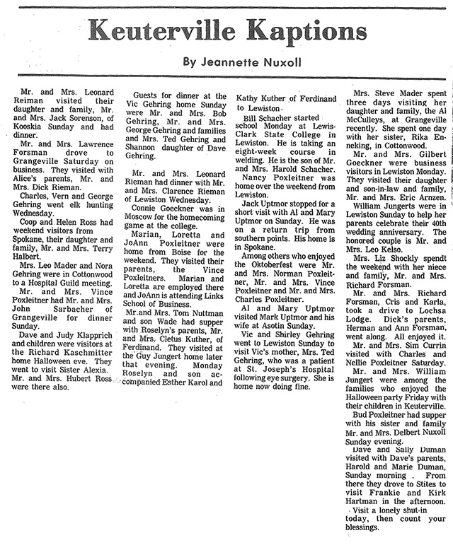 Keuterville news from the November 6, 1975 edition of the Chronicle. Click on the photo for a larger view.