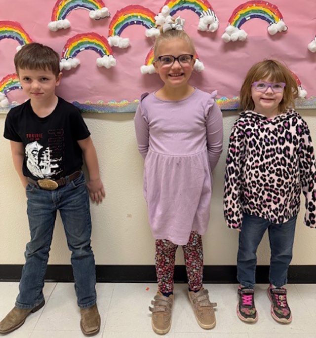 Kindergarten Red group top readers are from left: Ryder Arnold, Jasper Paul, and Amy Cochran. Photo by Jon Rehder.