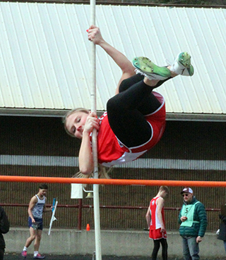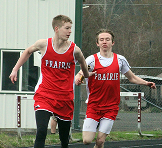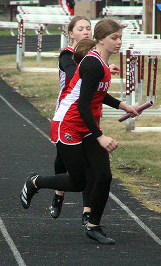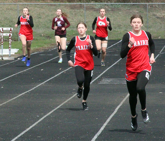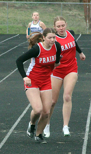 Two handoffs in the winning 4x400 relay. At left Reagan Brannan takes the baton from Mia Anderson. At right Sydney Shears takes the baton from Aubree Geis. ![]() Avery Riener took second in the triple jump but got injured in the process. ![]() Briggs Rambo in the 300 hurdles. ![]() Matthew Jones, left, and Caden Armbrust in the 800. ![]() Trajan Elven takes the baton from Caden Armbrust in the 4x200 relay. ![]() Callie Remacle in the high jump where she placed second. ![]() Cole Duclos in the pole vault. ![]() Prairie had a couple teams in the 4x100 relay's first heat. At lright Sierra Oliver takes the baton from Nadia Cash. Their team went on to win. At left Sage Elven comes up on Hailey Hanson fro a handoff for a throwers team. ![]() The 400 meter run which was won by Sydney Shears, right. In the middle is Aubree Geis and at left is Alli Rambo. ![]() Hailey Hanson won the javelin. ![]() Kennedy Riener won the 100 meter dash. ![]() Lillian Rehder ran the anchor leg of the winning medley relay and is coming around the final turn. ![]() Kennedy Riener takes the baton from Lilliam Rehder in the 4x100 relay, which they won along with Nadia Cash and Sierra OIiver. ![]() Matthew Jones and Phineas Fitch in the 1600. ![]() From left are Mia Anderson, who won, Kennedy Riener, Aubree Geis and Nadia Cash in the 200 meter dash. ![]() Molly Fowler and Faith Cash in the 1600. ![]() Sage Elven won the discus competition. ![]() Sierra Oliver and Reagan Brannan in the 300 hurdles. ![]() Sierra Oliver tied for first in the pole vault with Blake Uhlenkott, pictured above. MARCH 15-Small School Invite at Kamiah, 10 a.m.