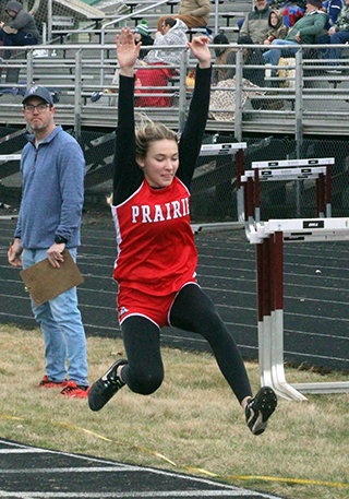 Prairie wins both team titles at Small School Invite Prairie opened their track season with team wins for both the girls and boys at the Small School Invite at Kamiah Saturday, March 15. The girls team rolled up 247½ pts. to finish nearly 150 ahead of second place Grangeville. The boys had a closer win as they scored 138 points to edge out second place Grangeville by 4 points. There were 8 schools in attendance. Dylan Uhlenkott was a triple winner for the boys, sweeping the sprints. He won the 100 in 11.45, the 200 in 23.61 and the 400 in 51.81. ![]() The other boys win was the medley relay team of Ashton Martin, Nathan Weber, Levi Gehring and Phineas Fitch with a time of 4:07.34. The girls team meanwhile swept all 4 relays and also the throwing events and the sprints. Hailey Hanson was a multiple winner with wins in the javelin at 94’8” and the shot put at 32’1”. She was also second in the discus at 101’6”. Sage Elven won the discus at 130’7” and was second in the javelin at 86’4” and second in the shot put at 31’9”. Kennedy Riener won the 100 meter dash in 13.75 and was second in the 200 in 29.37. Mia Anderson won the 200 in 28.38 and was 4th in the 100 hurdles despite falling as she came out of the blocks. Sydney Shears won the 400 in 1:04.16. Sierra Oliver and Blake Uhlenkott tied for first in the pole vault at 6’6”. Oliver was also second in the 300 hurdles in 55.42 and 5th in the 100 hurdles in 19.82. Uhlenkott was also fifth in the long jump at 11’5¼”. The 4x100 team of Nadia Cash, Avery Riener, Lillian Rehder and Kennedy Riener was 1st in 55.18. The team of Callie Remacle, Blake Uhlenkott, Breanne Schwartz and Lacey Schwartz was 2nd in 58.20 and the team of Hanson, Elven, Molly Fowler and Macie Uhlenkott was 5th in 1:02.30. The 4x200 team of Nadia Cash, Aubree Geis, Anderson and Shears won in 1:51.53 while the team of Rehder, Avery Riener and Breanne and Lacey Schwartz was 2nd in 2:04.71. The 4x400 team of Anderson, Reagan Brannan, Geis and Shears was first in 4:28.57. The medley team of Breanne Schwartz, Lacey Schwartz, Blake Uhlenkott and Rehder won with a time of 2:14.58. Other boys results: Matt Wemhoff was 2nd in the javelin at 114’6”, 2nd in the 400 in 54.27 and 3rd in the 200 in 23.61. Briggs Rambo was 3rd in the 110 hurdles in 20.35, 3rd in the 300 hurdles in 48.93 and 7th in the pole vault at 8’6”. Nate Forsmann was 3rd in the discus at 118’1” and 6th in the shot put at 36’10”. Ben Secrest was 4th in the 100 in 11.94, 4th in the 200 in 24.73 and 4th in the 400 at 58.16. Caden Armbrust was 4th in the 800 in 2:25.44 and 14th in the javelin at 83’2”. Fitch was 4th in the 110 hurdles in 21.91 and 6th in the 1600 in 5:43.50.Matthew Jones was 5th in the 800 in 2:27.87 and 7th in the 1600 in 5:45.68. Cole Duclos was 6th in the pole vault at 9’6” and 7th in the 100 in 12.52. Hayden Johnson was 6th in the 300 hurdles in 55.68. Ashton Martin was 8th in the discus at 97’5” and 12th in the 100 in 12.94. Levi Gehring was 11th in the 100 in 12.84. Kade Hanson was 11th in the 1600 in 6:42.09 and 20th in the discus at 66’9”. Trajan Elven was 12th in the discus at 92’17½”. Nathan Weber was 13th in the discus at 91’11”. Kento Morita was 17th in the 200 in 29.90 and 21st in the javelin at 67’8”. The 4x100 team of Martin, Johnson, Gehring and Weber was 5th in 53.80 while the team of Elven, Forsmann, Hanson and Morita was 7th in 56.90. The 4x200 team of Armbrust, Elven, Morita and Johnson was 4th in 1:50.18. Other girls results: Aubree Geis was 2nd in the 400 in 1:13.13 and 3rd in the 200 in 29.64. Avery Riener was 2nd in the triple jump at 29’3½”. Faith Cash was 2nd in the 1600 in 7:07.31 and 3rd in the 800 in 3:01.85. Callie Remacle was 2nd in the high jump at 4’6” and 3rd in the 100 hurdles in 19.24. Alli Rambo was 3rd in the pole vault at 6’0” and 6th in the 400 in 1:14.66. Reagan Brannan was 4thin the 300 hurdles in 56.04 and 9th in the 100 hurdles in 21.02. Nadia Cash was 5th in the 200 in 30.65. Molly Fowler was 6th in the 1600 in 8:25.83 and 7th in the discus at 65’1”. Macie Uhlenkott was 6th in the shot put at 22’2” and 6th in the discus at 75’11”. ![]()