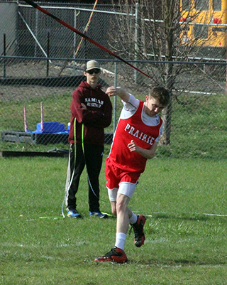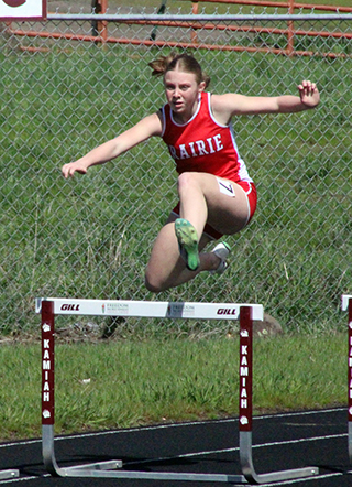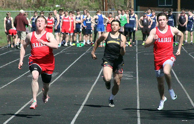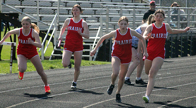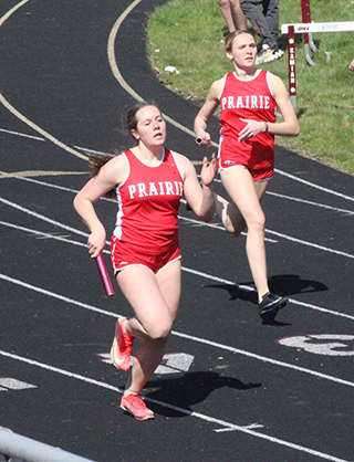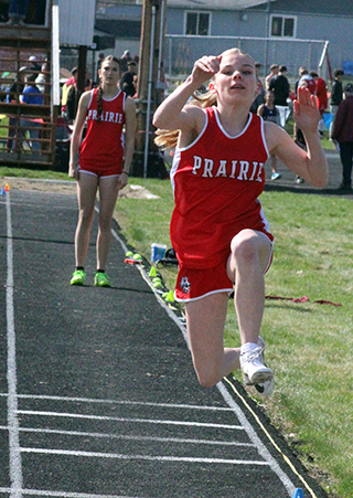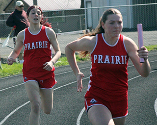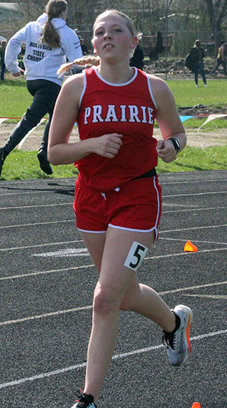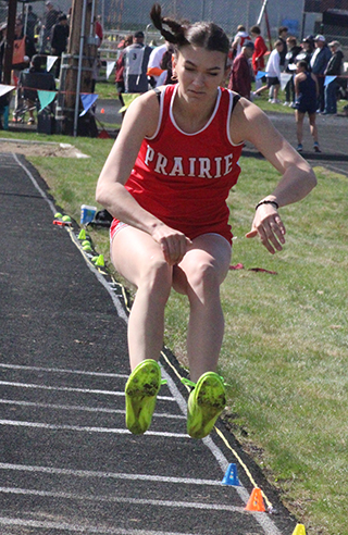 Uhlenkott wins 3 events at Kamiah Dylan Uhlenkott won all 3 sprints at the Kamiah Invitational Saturday, April 5, while Sydney Shears won both the 200 and 800. ![]() Uhlenkott won the 100 meter dash in 11.38, the 200 in 22.96 and the 400 in 50.69. Shears won the 200 in 27.51 and the 800 in 2:23.47. She was also 4th in the 100 in 13.49. Also winning an event was Sage Elven in the discus with a mark of 138’2”. She was also second in the shot put at 39’7” and third in the javelin at 90’4”. Her shot put mark is just 6½ inches shy of the school record. Prairie also won a pair of relays. The boys 4x100 relay team of Cole Duclos, Matt Wemhoff, Ben Secrest and Uhlenkott won with a time of 44.97. Meanwhile the girls 4x200 team of Aubree Rehder, Avery Riener, Lillian Rehder and Aubree Geis won in 1:55.24. They edged out the team of McKenzie Hope, Reagan Brannan, Breanne Schwartz and Lacey Schwartz that placed second in 1:59.67. Other girls results: Hailey Hanson was 2nd in the javelin at 94’0”, 4th in the shot put at 31’1” and 5th in the discus at 103’3”. Mia Anderson was 2nd in the 300 hurdles in 51.26 and 7th in the 100 hurdles in 18.51. Sierra Oliver was 2nd in the pole vault at 8’0”, 3rd in the 300 hurdles in 52.0 and 6th in the 100 hurdles in 18.26. Ella McLeod was 2nd in the 3200 in 15:18.90. Blake Uhlenkott was 3rd in the pole vault at 8’0”, 12th in the long jump at 12’4”, 7th in the 400 in 1:12.79 and 14th in the 200 in 31.72. Callie Remacle was 3rd in the high jump at 4’6”, 8th in the long jump at 13’5”, 10th in the 300 hurdles in 57.68 and 16th in the 100 hurdles in 21.69. Avery Riener was 4th in the triple jump at 30’8” and 7th in the long jump at 14’1”. Kennedy Riener was 5th in the 200 in 28.52 and 6th in the 100 in 13.53. Aubree Geis was 5th in the 400 in 1:04.16 and 9th in the 200 in 29.16. Nadia Cash was 7th in the 100 in 13.69. Reagan Branna was 7th in the 300 hurdles in 55.39 and 12th in the 100 hurdles in 20.17. Macie Uhlenkott was 8th in the discus at 80’1” and 11th in the shot put at 22’9”. Faith Cash was 10th in the 800 in 2:55.19. Aubree Rehder was 12th in the 100 in 14.52. Molly Fowler was 13th in the 400 in 1:22.30, 14th in the discus at 62’5” and 28th in the 200 in 34.88. McKenzie Hope was 11th in the 200 in 30.48 and 17th in the 100 in 14.64. Lacey Schwartz was 14th in the 100 in 14.56. Carmen Ove was 14th in the 400 in 1:23.96, 31st in the 200 in 36.31 and 32nd in the 100 in 15.87. Lillian Rehder was 18th in the 100 in 14.73. Breanne Schwartz was 20th in the 100 in 14.94. The 4x100 relay team of Nadia Cash, Kennedy Riener, Avery Riener and Anderson was 2nd in 52.62. The 4x400 team of Nadia Cash, Anderson, Geis and Shears was 2nd in 4:25.20 and the team of Kennedy Riener, Aubree Rehder, Oliver and Lillian Rehder was 3rd in 4:49.82. The medley relay team of Aubree Rehder, Lillian Rehder, Breanne Schwartz and Lacey Schwartz was 3rd in 2:13.73. As a team the girls placed 2nd with 171 points, 28 behind Logos. Other boys results: Matt Wemhoff was 2nd in the 400 in 53.24, 2nd in the javelin at 129’6” and 6th in the 200 in 24.22. Nate Forsmann was 3rd in the discus at 121’9” and 7th in the shot put at 36’1¼”. Ashton Martin was 6th in the discus at 111’5” and 31st in the 100 in 13.00. Ben Secrest was 4th in the 100 in 11.80, 4th in the 400 in 54.40 and 5th in the 200 in 24.06. Cole Duclos was 5th in the pole vault at 9’6” and 12th in the 200 in 25.01. Matthew Jones was 6th in the 3200 in 12:23.99 and 15th in the 1600 in 5:52.33. Phineas Fitch was 8th in the 1600 in 5:14.99 and 10th in the 800 in 2:15.43. Caden Armbrust was 8th in the 800 in 2:15.43 and 17th in the javelin at 83’10”. Nathan Weber was 11th in the 400 in 1:01.29 and 13th in the discus at 98’4”. Payton Stamper was 18th in the 100 in 12.56. Levi Gehring was 24th in the 100 in 12.78 and 25th in the 200 in 25.67. Onyx Lish was 16th in the discus at 77’11” and 20th in the shot put at 25’8”. Trajan Elven was 17th in the discus at 75’11”, 38th in the 200 in 28.33 and 45th in the 100 in 13.94. Kento Morita was 24th in the javelin at 67’3”. Hayden Johnson was 42nd in the 100 in 13.53. Gabe Decaria was 43rd in the 200 in 30.42 and 47th in the 100 in 14.40. The medley relay team of Morita, Stetson Hankins, Johnson and Armbrust was 4th in 4:34.31. The 4x200 team of Gehring, Martin, Stamper and Duclos was 4th in 1:50.49 while the team of Morita, Hankins, Lish and Decaria was 5th in 1:57.79. A second 4x100 team of Gehring, Martin, Stamper and Weber was 5th in 48.76. The 4x400 team of Armbrust, Morita, Jones and Fitch was 6th in 4:09.69 while the team of Decaria, Johnson, Lish and Weber was 8th in 4:23.11. The boys as a team placed 3rd with 106 points behind 1st place Logos and 2nd place Kamiah. St. John Bosco also had a competitor at the meet. Malachi Graham-Pile was 15th in the discus at 78’6” and 18th in the shot put at 26’3½”. ![]() Dylan Uhlenkott, left, and Ben Secrest, right in the 100 meter dash. Uhlenkott finished 1st and Secrest 4th in the event. ![]() Ashton Martin, Levi Gehring and Payton Stamper in a heat of the 100 meter dash. ![]() Avery Riener in the triple jump where she placed 2nd. ![]() Blake Uhlenkott in the long jump. Callie Remacle was to jump next. ![]() Dylan Uhlenkott takes the baton from Ben Secrest in the 4x100 which led to Uhlenkott's 4th, first place finish at the meet. ![]() Caden Armbrust, right, and Phineas Fitch in the 800 meter run. ![]() Cole Duclos clears the bar in the pole vault. ![]() Matt Wemhoff in the javelin where he finished 2nd. ![]() Syndey Shears, left, Kennedy Riener, center, and Aubree Geis in the 200 meter dash which was won by Shears. ![]() Sierra Oliver cleared 8' in the pole vault and finished 2nd. ![]() Sage Elven won the discus competition. ![]() Nate Forsmann in the shot put. ![]() At right Lillian Rehder has just handed off to Aubree Geis and at left, Brean
