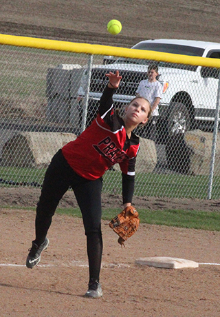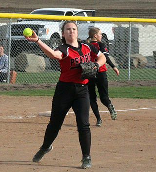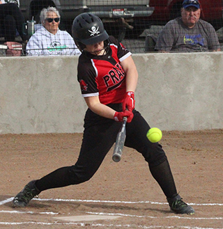 Lady Pirates lose at Genesee PHS SOFTBALL SCHEDULE FOR 2025 The Prairie Softball team played just 1 game this past week and lost 0-13 at Genesee on Friday, April 11. Prairie managed just 2 hits and 3 total baserunners against the defending state champions. Kaylie Lockett got the first hit with 2 outs in the top of the first but was stranded at first. In the bottom of the first Genesee put their first 5 runners on base against Lockett on 2 walks, 1 single and 2 errors. Genesee wound up scoring 4 runs. Prairie went down in order in both the second and third innings. Genesee added 2 more runs in the second inning and 2 errors and a single and 5 in the third on 4 hits, a walk and a hit batsman. In the fourth inning Avery Schacher picked up Prairie’s second hit and made it to second on an error. In the bottom of the fourth Genesee added 2 more runs on 2 singles, a walk and a hit batsman. In the top of the fifth, Grace Uhlenkott drew a walk to lead off the inning and stole second. However the next 3 hitters all struck out to end the game on the 10-run mercy rule. Lockett allowed 13 runs on 8 hits with 5 walks, 2 hit batsmen and 5 strikeouts. Prairie is now 1-4 both overall and in league play. Prairie 0 0 0 0 0— 0 2 5 Genesee 4 2 5 2 x—13 8 1 ![]() Kaylie Lockett connects for Prairie's first hit at Genesee. ![]() Bailey Key swings the bat at Genesee. ![]() Erica Schlader makes a catch at first base for an out. Also shown are shortstop Halee Rowland and left fielder Grace Uhlenkott. ![]() Kaylie Lockett throws to first for an out as third baseman Zoey Behler goes to cover third in case the runner at second advances. ![]() Zoey Behler throws to first for an out at Genesee. ![]() Erica Schlader at bat against Genesee. MARCH 18-Lapwai, there, 4:30 p.m., won 31-11 APRIL