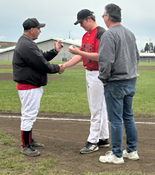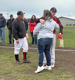 Peter Remacle and Wyatt Latimer. Each senior ballplayer got to run the