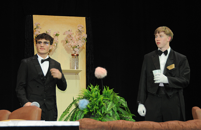 By Lorie Palmer What has art thefts, intrigue, dancing and a few surprises, as well? It’s “The Illusion Job.”Idaho County Free Press St. John Bosco Academy High School will present “The Illusion Job,” written and directed by drama volunteer Kim Frei, May 1-3. “That’s great — you guys have been working hard and this is looking good,” Frei told students during a scene rehearsal last week. “It’s coming together. Kim is really smart and creative and she has a certain way of seeing things,” assistant director Michael Rehder added. About the play: Stakes are high for the Royal Yorkshire Museum. Teetering on the edge of insolvency, this small museum has the once-in-a-lifetime chance of hosting the biggest archeological find in a century. If all goes well, this could be the breakthrough needed to save the museum and everyone’s jobs. If all goes well... Unfortunately, Britain is also experiencing one of the biggest crime waves in a century, as well. Art theft is at an all-time high and diamond smuggling has exploded due to England’s monopoly on one of the most rare and difficult diamond cuts currently known. Even the internationally-famous and mysterious antiquities thief, known only as La Flamme, is said to be in England. Security has its work cut out for it to keep the Klina Venus statue safe and pull off a successful exhibit, proving the museum worthy of being trusted with the most valuable artifacts. But not everything is as it seems, and the twists and turns never stop in this antiquities heist. With an ending determined by audience vote and six possible endings, the twists and turns could lead almost anywhere… Characters (in order of appearance): Rusty Sterling—Head of Security (suspect): Glenn Parmantier; Tom—Security: Nathan Wassmuth; George—The Butler: Tommy Rose; Heather Van Reijn—Museum Curator: Clare Uhlenkott; Simone—French Chef: Madeline Wassmuth; Blanche—French Maid: Catherine Seubert; Sorenson—Ticket Counter: Simon Hagen; Barbara—Tour Guide: Catherine Beckman; Jackie Payne—Reporter: Rachel Sonnen; Patty—Videographer: Brianne Nuxoll; Cynthia Albright—Wife of the Professor: Cecilia Remacle; Professor Albright: Ignatius Parmantier; Clancey—American Cowboy: Connor Nuxoll; Victoria—College Student: Presley Schoo; Aisha Marat—Antiquities Dealer: Savannah Perrin; Sidney—Director: Julia Wassmuth; Justine—Co-Director: Sarah Waters; Jason—Mechani: Clayton Black; Steve—Props Master: Zachary Murdock; Marcus Stone—Authenticator (suspect): Cody Weckman; Michelle Navy—Archeologist (suspect): Noelle Chmelik; Jerry—Customs Agent: Pierce Frei; Regina DeLuca—Producer: Miah Mager; and Isaiah Goldman—Pinch Hitter Director: Wyatt Crea. The Illusion job crew: Written and directed by: Kim Frei; Assistant Directors: Michael Rehder and Tara Stubbers; costume designer: Courtney Rehder; set design: Kim Frei, Alex Frei and SJBA shop class, Eric and Nathan Wassmuth, Therese Schmidt, Nicole Frei, Michael Rehder; Light designer: Henry Baldwin; Sound: Liz Bolan-York and Henry Baldwin. Special thanks: The Illusion Job Crew; directors: Kim Frei, Michael Rehder, Tara Stubbers; costumer: Courtney Rehder; musical lyrics: Kimberly Anderson; choreography: Kimberly Anderson, Tara Stubbers, Megan O'Shea, Madeleine Sevigny; musical accompaniment: Meghan Pesely; lighting designer: Henry Baldwin; lighting operator: Henry Baldwin; sound designer: Elizabeth Bolan York; sound operators: Elizabeth Bolan York, Noah Beckman, Cassi Enneking; makeup artists: Theresa Cunningham, Catherine Uhlenkott, Dani Sonnen, Jade Prigge, Tara Stubbers, Erin Chmelik; set construction: Eric Wassmuth, Alex Frei, the boys of the cast; set dressing: Therese Schmidt, Nicole Frei; props: Sarah Carothers, Kristin Black, the girls of the cast; program: Amy Gorges. ![]() ![]() ![]() ![]() Several photos from a dress rehearsal by Lorie Palmer.