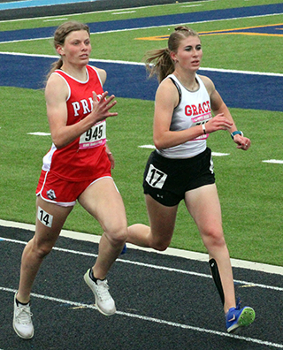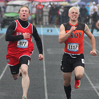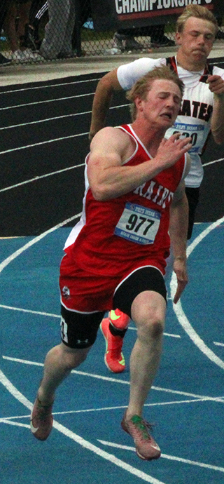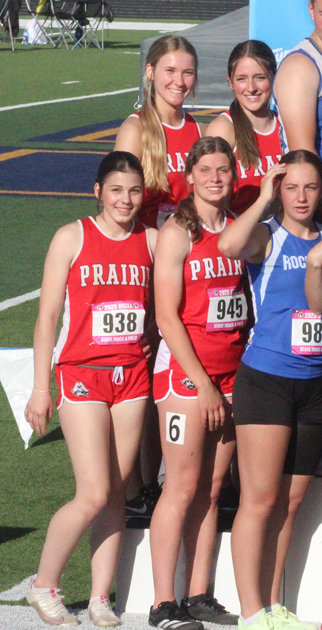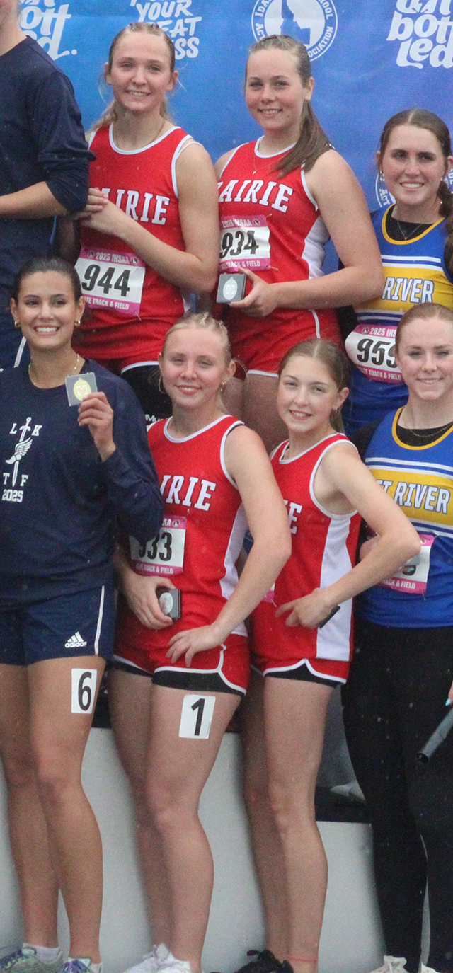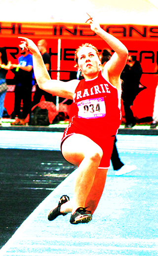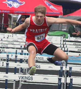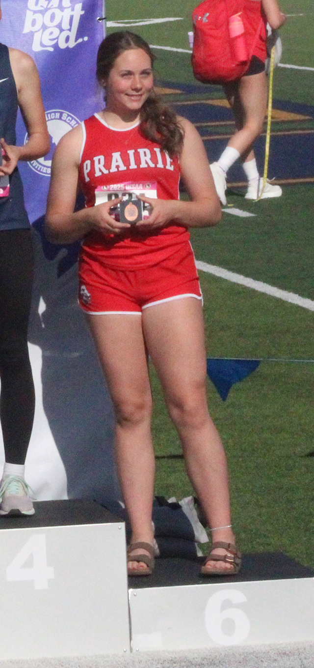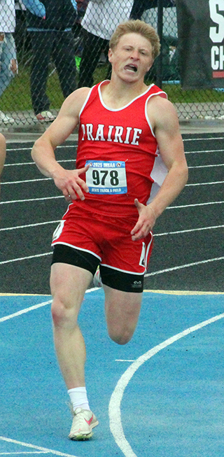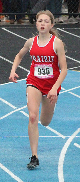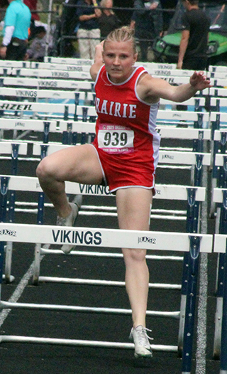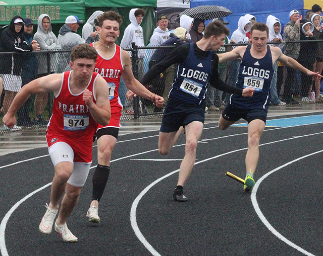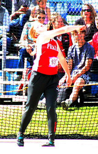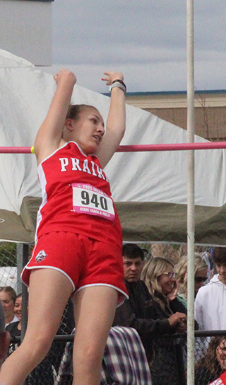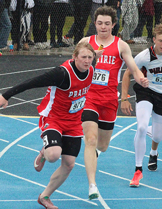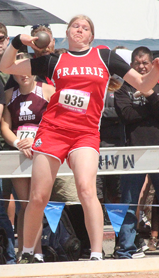 Track team brings home two state trophies Dylan Uhlenkott earned 4 gold medals at the State Track Meet while Sage Elven won her third straight gold medal in the discus. The boys and girls teams each brought home the second place team trophy, improving on last year when the boys were third and the girls fourth. Uhlenkott won the open 100 in 11.15, the 200 in 22.55 and the 400 in 48.82. He broke the state meet record in the prelims with a time of 48.53. That is also a new school record breaking the mark of 49.78 set a couple weeks ago at Kamiah. Elven won the discus with a mark of 142’0”. She also medaled in the shot put, placing second at 38’2” and in the javelin, placing 6th at 99’2”. The boys repeated as gold medalists in the 4x100 and 4x200. Cole Duclos, Matt Wemhoff, Secrest and Uhlenkott won the 4x100 in 43.80, just 0.2 seconds off the school record set last year at State. The 4x200 team of Duclos, Peyton Stamper, Wemhoff and Secrest won with a time of 1:32.65. They got some help when favored Logos had a bad second handoff but Secrest wound up passing at least two other runners in the final 50 meters to pull out the win. Also medaling at state for the boys team was Wemhoff with a 5th place finish in the 400 at 51.78. Also medaling at state for the girls were: Sydney Shears finished 2nd in both the 800 and 1600 in 2:21.41 and 5:21.53 respectively. Hailey Hanson earned 2 medals. She was 5th in the discus at 116’6”, 5th in the javelin at 99’5”. She just missed another medal with a 7th in the shot put at 34’6” but still earned 2 points for the team. Mia Anderson finished 5th in the 300 hurdles in 48.49. Aubree Geis finished 5th in the 400 at 1:00.34, a personal best. She was also 14th in the 200 in 27.79. Nadia Cash finished 6th in the long jump at 16’0” to earn a medal. She was also 14th in the 100 in 13.67. All 4 girls relays made it onto the medal stand. The 4x200 team of Cash, Anderson Geis and Kennedy Riener was 2nd in 1:49.53. The 4x100 team of Cash, Anderson, Sierra Oliver and Kennedy Riener was 4th in 51.62. The medley team of Aubree Rehder, Avery Riener, McKenzie Hope and Shears was 5th in 1:56.76. The 4x400 team of Avery Riener, Anderson, Geis and Shears was 6th in 4:17.33. Other boys results: Nate Forsmann earned 2 points for the team by finishing 7th in the discus with a mark of 135’3”. Phineas Fitch placed 13th in the 1600 in 4:54.10. Briggs Rambo was 14th in the 110 hurdles in 17.52. Duclos was unable to clear opening height in the pole vault, which was equal to the school record mark he holds at 10’6”. Other girls results: Oliver earned 2 points for the team in the pole vault by equaling her school record mark of 9’0” which was good for 7th place. She was also 13th in the 100 hurdles in 17.84 and 14th in the 300 hurdles in 51.49. Blake Uhlenkott earned 1/6 of a point for the team with a 6-way tie for 8th in the pole vault at 8’0”. Macie Uhlenkott was 10th in the discus at 101’10”. Avery Riener finished 11th in the triple jump at 32’3½”. Callie Remacle was 13th in the high jump at 4’8”. Alli Rambo was 14th in the pole vault at 7’6”. As a team the boys scored 56 points, well behind first place Logos, who had 150, and 4 points ahead of third place Butte County. The girls team scored 80.16 points. Logos was first with 112 points. They were 7 points ahead of third place Valley. ![]() ![]() Sage Elven won her third straight gold medal in the discus at State. She also took second in the shot put. ![]() Cole Duclos is about to hand off to Peyton Stamper in the 4x200 while at right, disaster struck the favored Logos squad. ![]() Matt Wemhoff hands off to Ben Secrest for the final leg of the 4x200 relay. Secrest powered past two other anchor runners in the final 50 meters to claim first place. ![]() Troy's Jackson Marone nosed out Dylan Uhlenkott in the prelims of the 100 but Uhlenkott won in the finals. ![]() Dylan Uhlenkott comes off the curve with the lead in the 200 meter dash and went on to win. ![]() Ben Secrest hands off a lead to Dylan Uhlenkott in the 4x100 after an outstanding third leg where he passed two runners. Uhlenkott maintained the lead to give Prairie the win. ![]() Sydney Shears runs through the rain in the 800 meter final where she finished 2nd. ![]() Sydney Shears pulled up alongside the leader in the 1600 in the final straightaway but the Grace runner managed to hold on for the win. ![]() ![]() Hailey Hanson finished 5th in the discus for a state medal and just missed a medal in the shot put finishing 7th. She also earned a 5th in the javelin. ![]() Mia Anderson is about to clear a hurdle in the 300 meter finals where she finished 5th. ![]() Nadia Cash went 16'0" in the long jump to finish 6th. ![]() Aubree Geis in the 400 meter dash final where she finished 5th. ![]() Matt Wemhoff finished 5th in the 400. ![]() ![]() Aubree Rehder gets out of the starting blocks in the medley relay. Also shown is McKenzie Hope handing off to Sydney Shears for the final leg. Prairie placed 5th in the event. ![]() ![]() Nadia Cash hands off to Kennedy Riener and Aubree Geis hands off to Mia Anderson in the 4x200 relay where Prairie finished 2nd. ![]() Avery Riener hands off to Mia Anderson in the 4x400 relay where Prairie finished 6th. ![]() Sierra Oliver hands off to Mia Anderson in the 4x100 where Prairie finished 4th. ![]() Nate Forsmann finished 7th in the discus, just missing out on a medal but earning the team 2 points. ![]() Callie Remacle clears the bar in the high jump. ![]() Sierra Oliver equaled her school record of 9'0" in the pole vault to finish 7th and earn the team 2 points. ![]() Blake Uhlenkott finished in a 6-way tie for 8th in the pole vault earning the team 1/6 of a point. ![]() Alli Rambo clears opening height in the pole vault. ![]() Avery Riener int he triple jump. ![]() Briggs Rambo in the 110 hurdles prelims. ![]() Macie Uhlenkott finished 10th in the discus. ![]() Phineas Fitch in the 1600. 