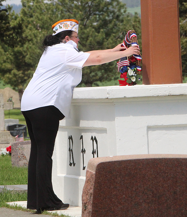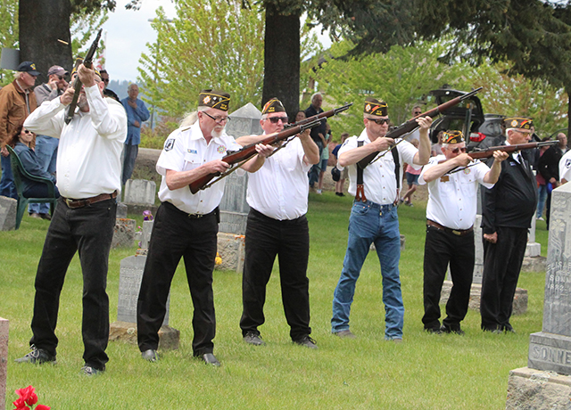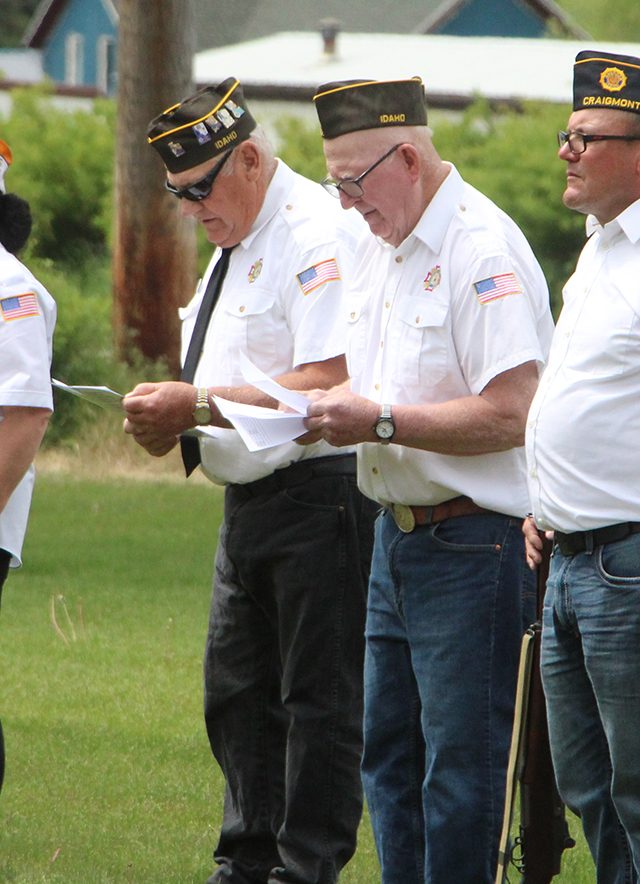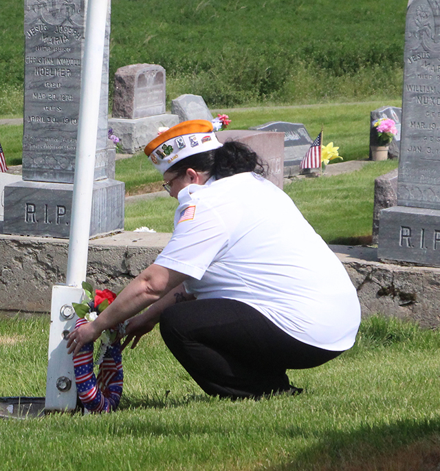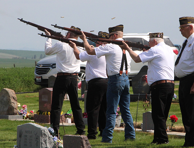 ![]() Lineup at the start of the ceremony. ![]() Sabrina Johnson lays the wreath. ![]() Jim Schumacher reads the names of those veterans buried in the Greencreek Cemetery. ![]() The gun salute at Greencreek. ![]() Joe Riener plays "Taps". Cottonwood Catholic Cemetery ![]() Lineup at the Cottonwood Catholic Cemetery. ![]() Sabrina Johnson lays the wreath at the Cottonwood Catholic Cemetery. ![]() Roy Arnzen and Jim Schumacher trade off reading the names of veterans buried in the Cottonwood Catholic Cemetery. ![]() Gun Salute at the Cottonwood Catholic Cemetery. Cottonwood Community Cemetery ![]() Sabrina Johnson lays the wreath at the Cottonwood Community Cemetery. ![]() Jim Schumacher and Roy Arnzen read the names of veterans buried in the Cottonwood Community Cemetery. ![]() The Gun Salute at Cottonwood Catholic Cemetery. ![]() Jim Schumacher reads the poem "In Flanders Field." ![]() Marching off at the end of the the services. |