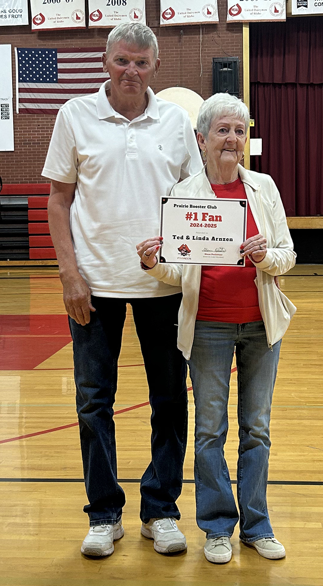 Ted and Linda Arnzen were named as Prairie Booster Club's #1 Fans. Click on the photo for a larger