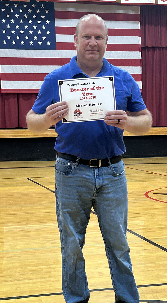 Shaun Riener was named as Prairie Booster Club's Booster of the Year. Click on the photo for a