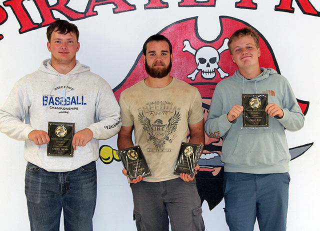 Prairie baseball plaque winners are from left: Carter Shears, 4-year letterman and co-captain; Jake Quintal, Most Valuable Player and 4-year letterman and co-captain and Collin Ray, 4-year letterman and co-captain.