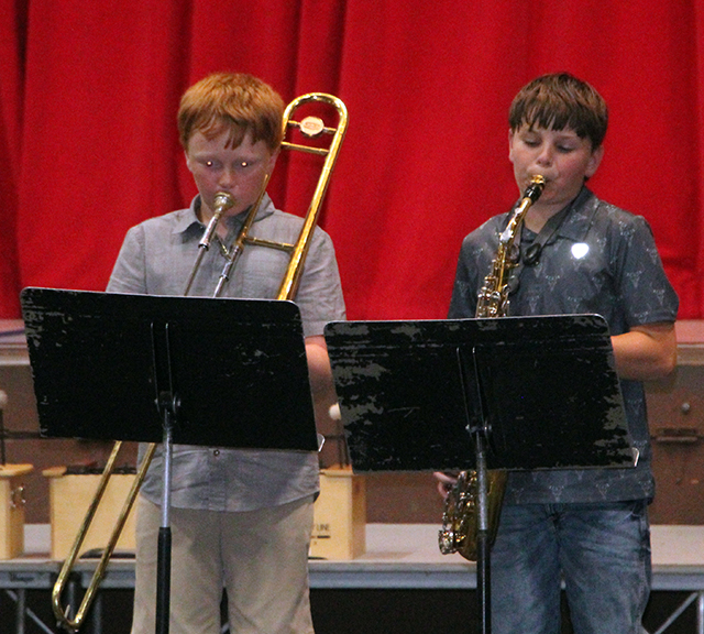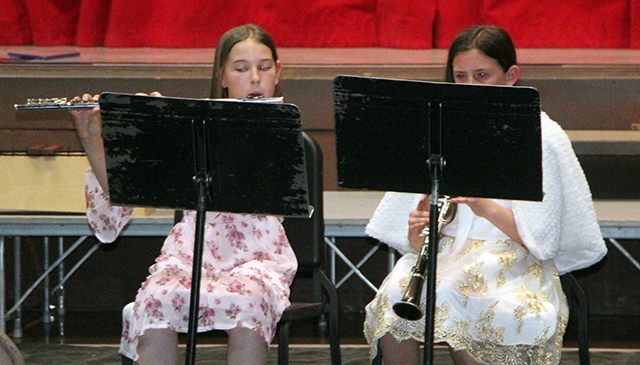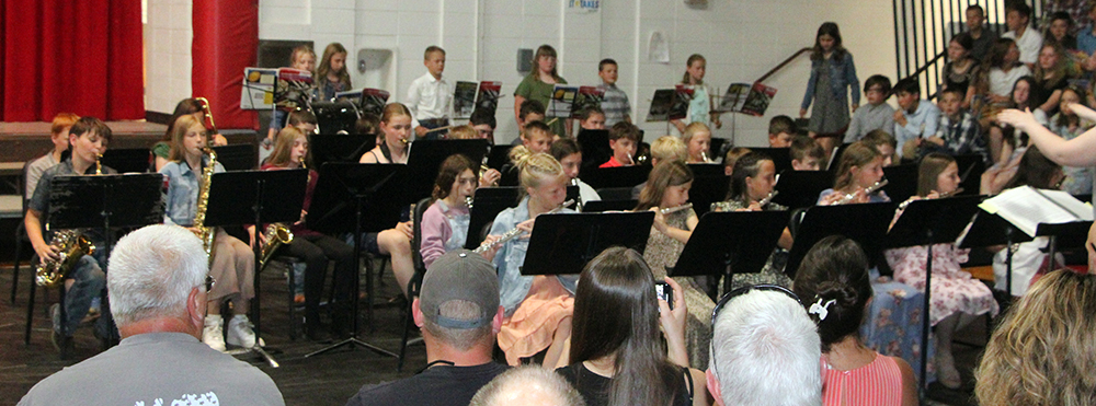 Prairie Elementary School Concert ![]() 1st graders ![]() 2nd graders ![]() 3rd graders ![]() 4th graders ![]() 5th grade band ![]() 6th grade band ![]() Brody Raymond and Darrel Holcomb perform a trombone-saxophone duet. ![]() Hailey Frei performs a flute solo with accompaniment from her grandmother Raina Frei. ![]() Julia Schlader and Clarise Duclos performed a trombone-trumpet duet. ![]() Grace VanHouten performs a flute solo. ![]() Hailey Frei and Malia Weber perform a flute-clarinet duet. ![]() Moses Musick and Kallen Lockart perform a clarinet duet. |