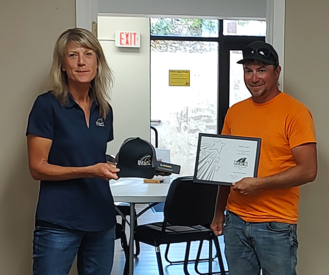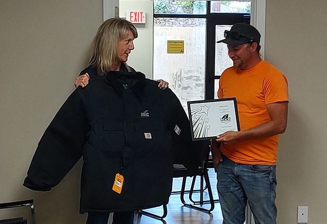 Dallas Paul received a pair of awards from Jayme Coonce of LHTAC. In