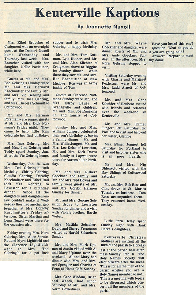 Nuxoll's Keuterville Kaptions column from the February 4, 1976 edition
