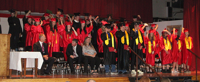 The PHS class of 2025 flip their tassels after receiving their diplomas and being certified by Supeintendent Jon Rehder. See story below left for more photos from graduation. Click on the
