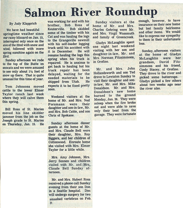 Eva Herzog's Ferdinand Area News column from the February 4, 1976 edition