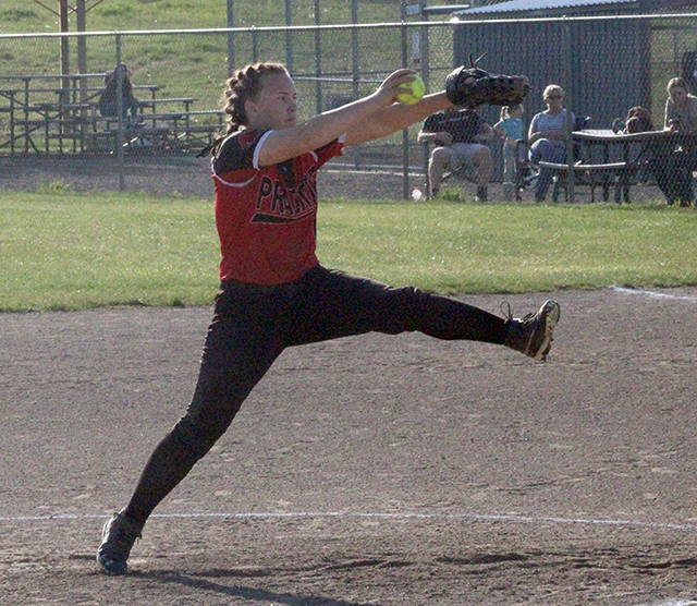 photo, a senior pitcher/shortstop and Erica Schlader, lower photo, a