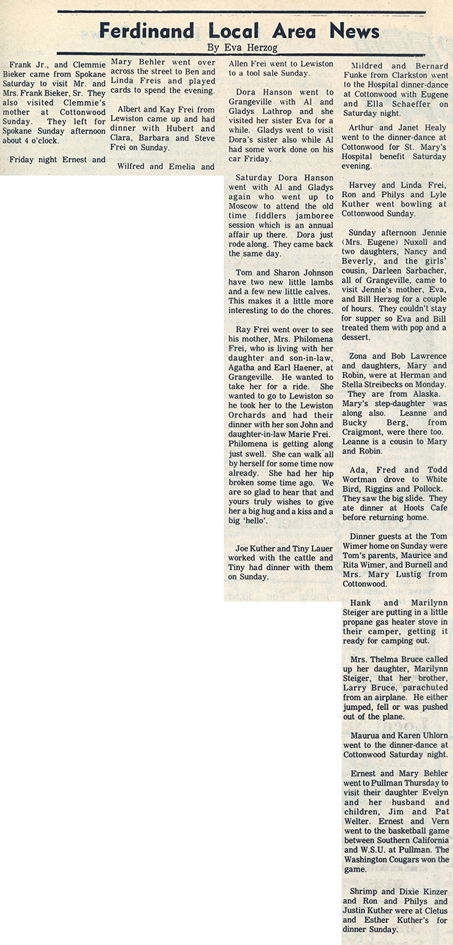 A second batch of Eva Herzog's Ferdinand Local News from the Feb. 12, 1976 edition of the Chronicle. Click on the photo for a larger