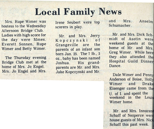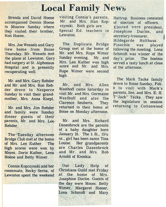 couple of sections of Lucille Wimer's Local Family News from the Feb.
