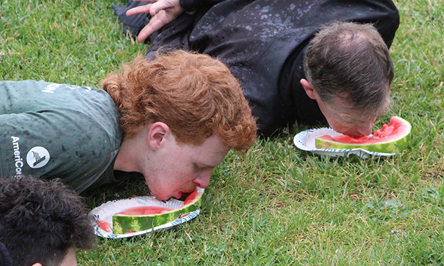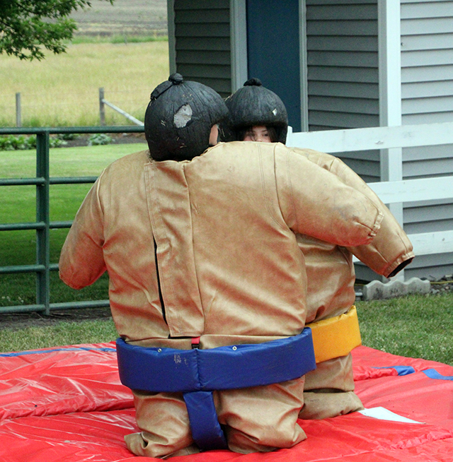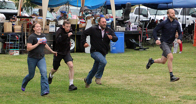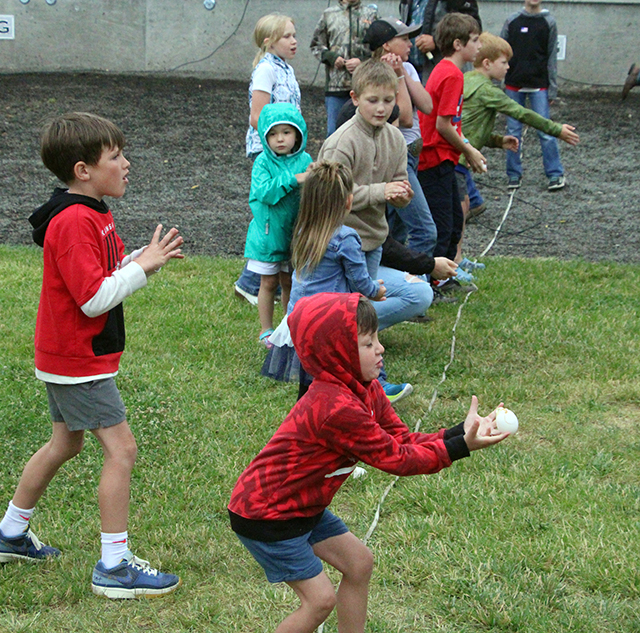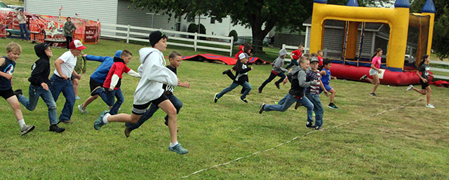 Greencreek Celebration in pictures ![]() Some of the breakfast crowd inside the hall. ![]() Adam Frosmann again ran the bingo with lots of help from some young callers. ![]() A canopy was set up for the auctioneers and we're sure they appreciated it as the heaviest rain of the day came as the auction started. From left are Don Schumacher, auctioneer John Schumacher and Aaron Hinkelman. ![]() Youngsters enjoy the bouncy castle. ![]() The barrel train is always popular with the youngsters. When Dale Stubbers first fired up the lawn tractor that pulls it there was a rush of youngsters over to be the first to get a ride. ![]() The always popular kiddie-car merry go round that has to be close to 60 years and running. ![]() The little merry go round was popular with the little tykes. ![]() A couple of youngsters try out the sumo suits. The fight was over once one of them fell down as they were like a turtle on their back and needed help to get back up again. ![]() Street sports started in a light sprinkle with the youngest runners starting things. ![]() The second youngest group of racers near the finish line. ![]() The over 25 foot race. They had to go down to the finish line and then turn and go back to the start. ![]() The young ladies at left appeared about to finish first when they crashed in the 3-legged race. ![]() The start of the wheelbarrow race. ![]() The youngster in the red hoodie at front unfortunately had his egg break on the very first toss. ![]() This young man let out a scream as his egg broke when he caught it. ![]() This young lady's egg exploded on her. ![]() The young man in the white t-shirt comes up for air after finishing off his chunk of watermelon in the watermelon eating contest. ![]() The middle group in the watermelon eating contest. Madison Duman, in the blue print shirt wound up winning. ![]() A pair of previous winners go it at as Sebastian Nuxoll and his father Eric near the finish. Eric, a multi-year winner, came out on top again. |