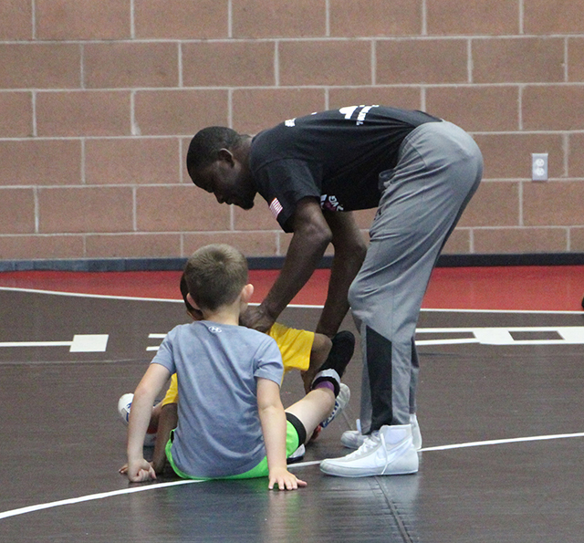Purler Wrestling gives a couple of young wrestlers some pointers at the
