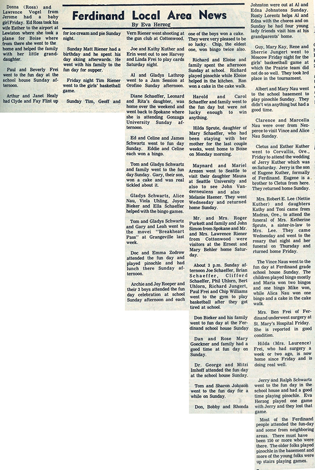 The Ferdinand Local Area News from the Feb. 26, 1976 edition of the Chronicle.