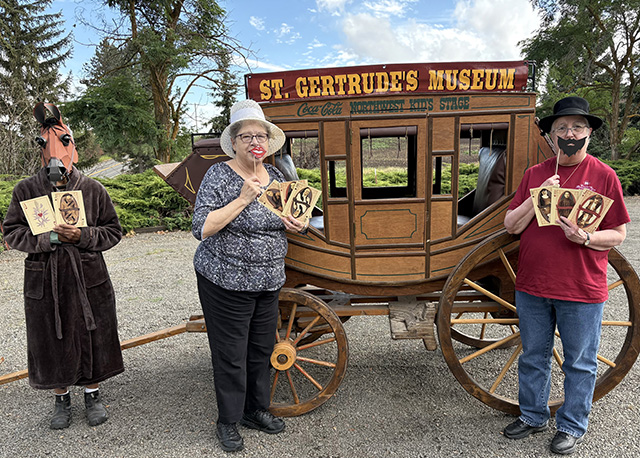 Janet Barnard and Sr. Theresa Jackson get into the wild west spirit for