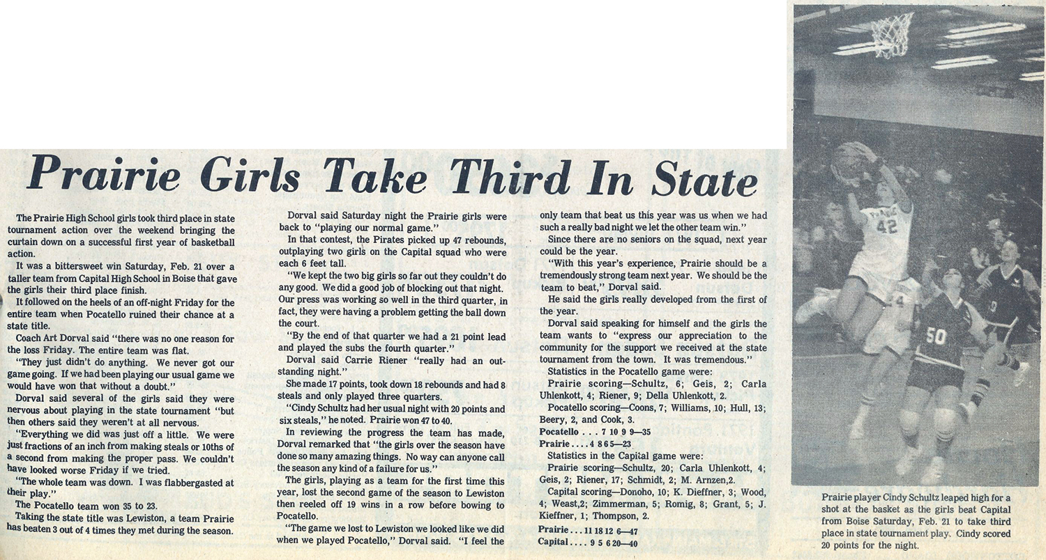 years ago in the fall of 1975, Prairie started their girls basketball