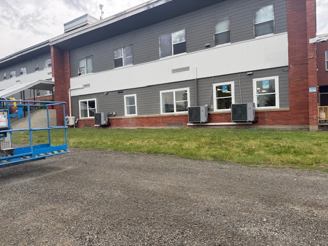 and replacing windows in the section of the school to the right of the