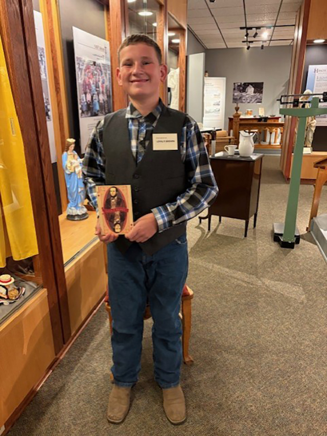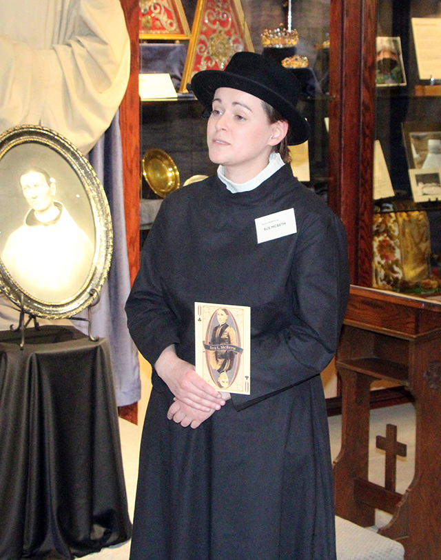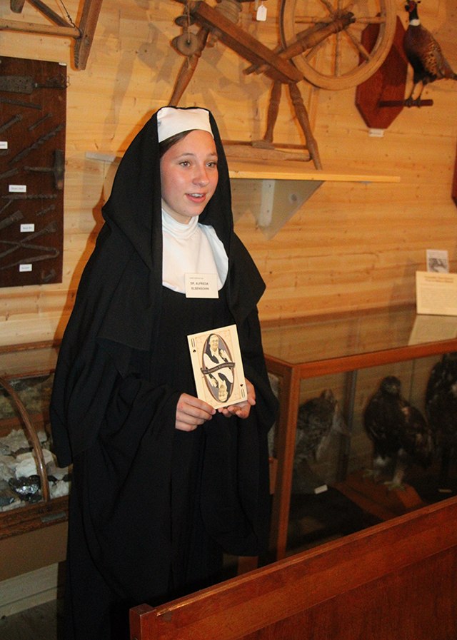 1939 with a couple of exceptions. The highest museum award you can get in Idaho is the Sr. Alfreda Award which comes with $10,000. It is given jointly by the Idaho Humanities Council and the Idaho State Historical Society. I was also interested in Camas Prairie history. I wrote four books and two of them, Pioneer Days, are considered the premier history books of Idaho County which is why I am in both the poker and pinochle card decks. ![]() Leah Uptmor as Sr. Alfreda Elsensohn in the exhibit which is a replica of the attic where Sr. Alfreda started the museum. |