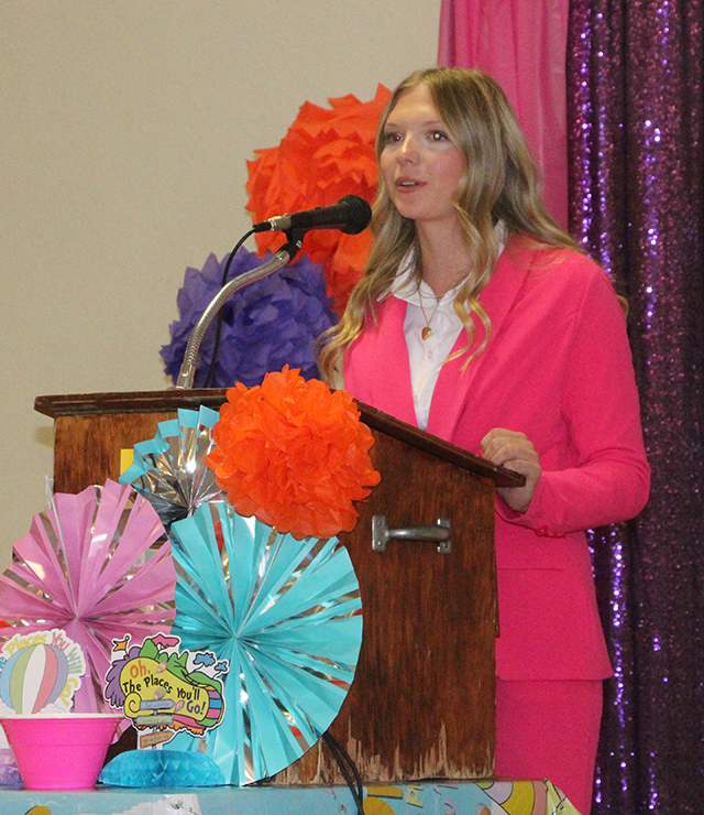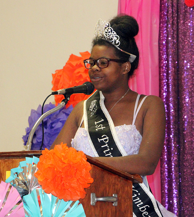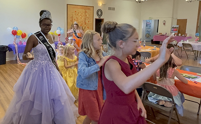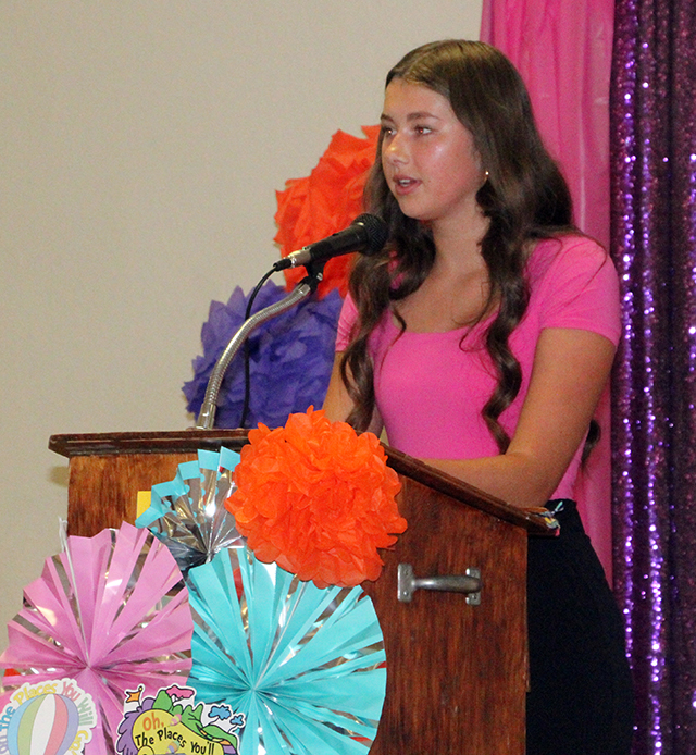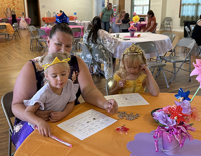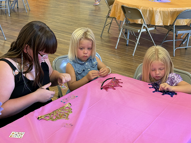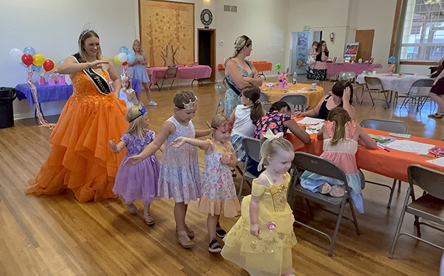 Candidates Ellie Kouril and Molly Fowler give their speeches. ![]() 2025 Second Princess Bailey Key gives her speech. ![]() ![]() Candidates Ella McLeod and Avery Brown give their speeches. ![]() The 2026 candidates and 2025 Royalty. Standing from left are candidates Ellie Kouril, Avery Brown, Molly Fowler, Mikayla Rowland, Bethany Stowell and Ella McLeod. Seated from left are the 2025 Royalty, 1st Princess Kimberly Seaver, Queen Halee Rowland and 2nd Princess Bailey Key. Little Princess Tea Party ![]() The Idaho County Fair Royalty with many of the Little Princesses at their Little Princess Tea Party held Sunday, Aug. 10 at the Cottonwood Community Hall. ![]() ![]() The young ladies practice their parade wave in the above two photos with Princesses Kimberly Seaver and Bailey Key. ![]() Fair Queen Halee Rowland with a Little Princess. ![]() Kendra, Chandler with her daughters Carter and Katie await their turn at Pin the Balloon as Charlie Killmar takes her turn with help from Princess Bailey Key. ![]() 3 Little Princesses work on their Crowns. ![]() Addison Holthaus takes a big bite out of a cupcake. ![]() Queen Halee Rowland reads from the Dr. Seuss book "Oh, the Places You'll Go" which is where they got the theme for this year's Fair. ![]() They appear to be playing Royalty Bingo. Little Princess photos by Tara Rowland. |