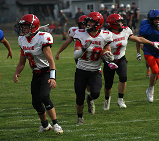 25 turn out for PHS football There are 25 players out for Prairie High School football this season led by 7 seniors. The seniors are Levi Gehring, Levi McElroy, Chris Schumacher, Max Rehder, Oliver van Houten, Benny Secrest and Philip Treib. Gehring, McElroy and Schumacher are returning starters while Secrest is in his first year out for football. There are 4 juniors. They are Lane Mader, Payton Stamper, Kade Quintal and Ashton Martin. There are also 4 sophomores. They are Trajan Elven, Zachary Schumacher, Josh Abbott and Onyx Lish. There are also 10 freshmen. They are Cooper Riener, Marshall Weber, Sam Rehder, Bucky Harman, Isaiah Warren, Tate Uhlenkott, Austin Labrum, Zander Reuter, Carson Lockart and John Seubert. Ryan Hasselstrom returns as head coach with Teel Bruner and Matt Elven as assistants. The Pirates will have to replace several strong seniors in running back Dylan Uhlenkott, defensive end/receiver Matt Wemhoff and linemen Carter Shears and Jake Quintal. Levi McElroy returns at quarterback with Levi Gehring and Chris Schumacher seeing time as runners last year. Stamper may also get some carries after missing last year with an injury. Martin returns as the starting center but Prairie will need to build a new line around him. Kendrick and Logos appear to be the league favorites again this year. Prairie’s first regular season game is this Friday, August 29 at Cottonwood against Deary. Game time is 7 p.m. ![]() Prairie warmed up in their black uniforms then switched to their whites once play started as both other teams in attendance had dark jerseys. ![]() The JV played first and they line up on defense against Tri-Valley. ![]() Marshall Weber runs with the ball. ![]() Kade Quintal, left, and Lane Mader, right, block as Chris Schumacher, 10, carries the ball. ![]() Levi McElroy caries the ball as Chris Schumacher blocks. ![]() Sam Rehder carries the ball. All Jamboree photos by Steve Wherry. PIRATES BOYS FOOTBALL SCHEDULE FOR 2025