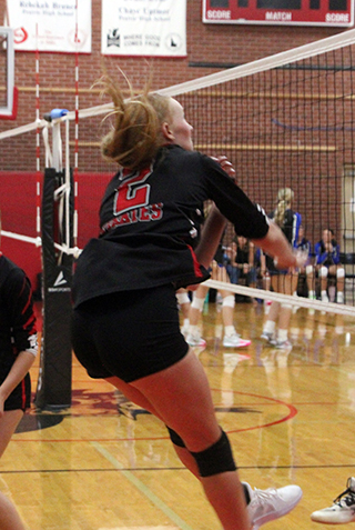 24 turn out for PHS volleyball There are 24 girls turned out for Prairie’s volleyball team this year. They will be under the guidance of a new coach, Alicia Hagen. Madison Shears returns as the JV coach. There are 12 players listed on the varsity led by seniors Kylie Schumacher, Sierra Oliver and Avery Riener. Juniors on the team this year are Kylee Riggers and Kennedy Riener. Sophomores are Zoey Behler, Mia Anderson and Beka Schumacher. Freshmen are Bekah Shears, Tori Shears, Harlee Hansen and Capri Hagen. Bekah Shears and Behler will be swing players as they will also get JV playing time. There are 3 juniors on the JV team. They are Audrey Warren, a transfer from Nezperce, Erica Schlader and Halee Rowland. There are 9 sophomores on the JV squad. In addition to Behler they are Macie Uhlenkott, Mikayla Rowland, Kenly Forsmann, Faith Cash, Alli Rambo, Blake Uhlenkott, Grace Kaschmitter and Molly Fowler. There are 2 freshmen on the JV: Tinley Hibbard and Bekah Shears. Prairie looks to be in a rebuilding year with the loss of 4 senior starters from last year. They also won’t have starters from last year and current seniors Hailey Hanson and Sydney Shears, who decided not to take volleyball this year and current junior Nadia Cash who is out for the season with a knee injury. Prairie hosted a Jamboree last Tuesday. Their first regular season match is at Logos on Thursday, Aug. 28. ![]() Kylie Schumacher makes a block against C.V. as Mia Anderson looks on during the Jamboree Tuesday, August 19. ![]() Sierra Oliver digs a C.V. serve at the jamboree. ![]() Avery Riener makes a set. ![]() Beka Schumacher passes the ball. ![]() Harlee Hansen makes a block. ![]() Kylee Riggers slams a spike against C.V. ![]() Kennedy Riener serves. ![]() Mia Anderson makes a set. ![]() Tori Shears makes a pass.