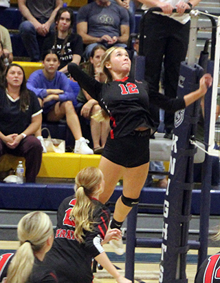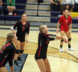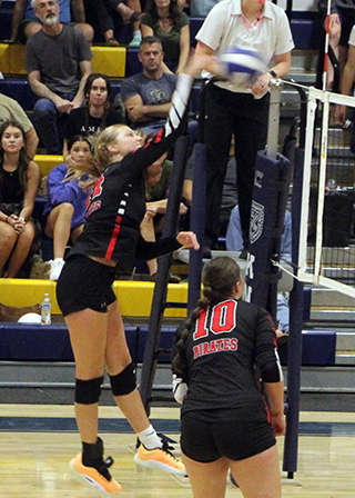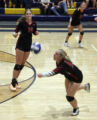 Lady Pirates rally to win at Logos The Prairie Lady Pirates opened their season with a league match against Logos at Moscow. They had to rally from down 2 sets for a 13-25, 23-25, 27-25, 25-19, 15-9 win. Logos started the first set by taking a 0-3 lead. A kill each by Kylie Schumacher and Mia Anderson plus an ace by Kennedy Riener tied it at 3. ![]() A kill by Beka Schumacher tied it again after Logos had scored a sideout. Logos then took the lead for good with a 7-point scoring run that made it 6-14. A kill by Kennedy Riener and an ace by Kylee Riggers made it 8-14 but that was as close as Prairie would get as Logos scored the next 3 for a 9-point lead and pulled away to win by 12. A free ball kill by Kylie Schuamcher scored the first point of the second set. After Logos tied it, Kennedy Riener scored a kill for a 2-1 lead. Logos then took back the lead with 4 straight points and lead by as many as 5 at 5-10. Prairie rallied back within 1 after Avery Riener served 2 aces to make it 11-12. After a trade of sideouts, Kennedy Riener served Prairie to an 18-13 lead. Beka Schumacher had 2 kills, Kylie Schumacher had a kill and a block and Kennedy served 2 aces. Logos scored 3 straight to pull within 2 but a bricked served and 2 aces by Kylie Schumacher made it 21-16 Prairie. Logos then scored 4 straight to make it 21-20. A kill by Beka Schumacher made it 22-20 but Logos then scored 4 straight to get to set point at 22-24. Avery Riener scored a kill to get within 1 but a missed jump serve ended the set in Logos’ favor. In the third set it started off like it was going to be a sweep for the Knights as Prairie fell behind 4-9, 5-12 and 8-17. A kill by Kylie Schumacher sent Avery Riener to the service line for 3 straight points. She had an ace while Kylie and Kennedy each added a kill to get within 5 at 12-17. Logos was able to hold off Prairie as they took a 16-22 lead. A kill by Riggers put Anderson on the service line. A kill by Beka Schumacher, a block by Riggers and an ace by Anderson cut the deficit to 20-22. After a Logos sideout, Beka Schumacher slammed a spike off a block to make it 21-23. At this point Prairie picked up a point that we didn’t catch as all of a sudden the score was tied at 23-23 after a kill by Riggers. An ace by Beka Schumacher had it 24-23. Logos then scored a sideout and served an ace to get to 24-25. A kill by Avery Riener tied it and Riggers then served out the set as Kylie Schumacher won a joust at the net and Kennedy Riener scored the set winning kill. Prairie had a bit of a let down after pulling that game out as they fell behind 0-3 to start the next set. A block by Kylie Schumacher, an ace by Avery Riener and a kill be Kylie tied it at 3. Logos then scored the next 3 points and eventually led 7-12. A kill by Beka Schumacher and 2 jump serve aces by Beka made it 10-12. After 2 sideouts, Kylie Schumacher won a joust at the net to make it 12-13. After a Logos sideout and then a bricked serve, Avery Riener had a big serving run. She served Prairie from a 13-14 deficit to a 19-14 lead. She had 3 aces while Kennedy Riener had 2 kills and Kylie Schumacher scored on a block. Logos scored 3 straight to get within 2 before bricking a serve. Kennedy Riener served 2 aces and Beka Schumacher added a kill to make it 23-17. After a Logos sideout, Kylie Schumacher slammed a spike off of a block to get to set point. Logos scored a sideout but Harlee Hansen then scored the set-winning kill to force game 5. Avery Riener served an ace to open the fifth set but then Logos took the lead. Prairie tied it a 3 and again at 4. Logos took leads of 4-6 and 5-7. A free ball sideout kill by Avery Riener sent Riggers to the service line. Riggers used her jump serve to give Prairie control of the set. Kylie Schumacher scored a kill to tie it at 7-7. An ace by Riggers gave Prairie the lead. A kill by Kylie forced a Logos timeout. Another ace by Riggers was followed by another kill by Kylie and then another ace by Riggers to make it 12-7. After another Logos timeout the Knights were able to score a sideout. A slam by Kylie Schumacher and a spike down the sideline by Kennedy Riener put Prairie at match point at 14-8. Logos scored a sideout but Kylie Schumacher then closed out the match with a kill. Kylie Schumacher had 17 kills, including 3 blocks. It seemed like most of those kills came in the final 2 sets. She also had 4 assists and 3 aces. Beka Schumacher had 16 kills, 2 assists and 3 aces. Kennedy Riener had 9 kills and 6 aces. Avery Riener had 5 kills, 22 assists and 8 aces. Riggers had 4 kills, including a block, 1 assist and 5 aces. Anderson had 2 kills, 9 assists and 1 ace. Sierra Oliver had 2 kills and 4 assists. Hansen had 1 kill and 1 ace. Capri Hagen had 10 assists. Prairie is now 1-0 on the season and 1-0 in league play. Logos won the JV match 24-26, 18-25, 8-15. The opening game was the JVs best chance at a win. Logos scored first but Prairie took their first lead on an ace by Macie Uhlenkott. The lead changed hands a couple times with Prairie taking a 2-point lead after Zoey Behler served and ace and Halee Rowland scored a kill to make it 8-6. Prairie took a 3-point lead after 2 aces by Behler that made it 17-14. Prairie also led by 3 at 21-18 after an ace by Rowland. Logos then came back to take a 22-24 lead. A dig kill by Rowland and an ace by Erica Schlader tied it at 24-24. However Logos scored the side out then scored an ace to win the set. In the second set Prairie scored first but Logos came back for a 1-3 lead. A kill by Alli Rambo scored a sideout. Then Faith Cash scored a second touch kill and Rowland served an ace for a 4-3 lead. After another kill by Cash and a kill by Tinley Hibbard, Prairie led 6-4. They took their biggest lead of the set at 9-5 after a kill by Audry Warren and 2 aces by Schlader. Logos answered with 6 straight points and put together a 5-13 run to take a 14-18 lead. They went on to win by 7 to clinch the match. In the third game Prairie fell be
