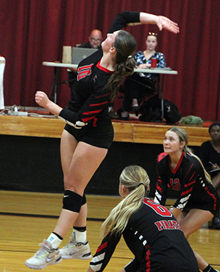 Kennedy Riener rolled one over the net to make it 23-18. Lapwai scored the next 2 points before Oliver scored a back row kill to get to set point. Hansen then served an ace for the winner. Kylie Schumacher wound up with 16 kills, including 4 blocks. She also had 3 assists and 7 aces. Beka Schumacher had 14 kills including a block plus 2 assists and 7 aces. Kennedy Riener had 12 kills and 4 assists. Anderson had 9 kills, including 2 blocks plus 5 assists and 3 aces. Avery Riener had 6 kills 22 assists and 2 aces. Riggers had 5 kills and 4 aces. Hansen had 4 kills, including an block and 1 ace. Oliver had 3 kills and 1 assist. Capri Hagen had 17 assists. Prairie also won the JV game 25-16, 25-21. After giving up the first point, Halee Rowland scored a kill and Faith Cash served Prairie to a 4-1 lead with 2 aces plus another kill by Rowland. After Lapwai pulled within1 at 5-4, Alli Rambo scored a sideout kill and then served 2 aces for an 8-4 lead. Lapwai again pulled within 1 at 12-11 before another sideout kill by Rowland. With Cash serving, Rowland and Rambo each scored a kill. Then Cash served 2 aces to make it 17-11. The rest of the set was mostly sideouts with Prairie scoring the only 3 points on serve, a kill by Tinley Hibbard and Zoey Behler and a set-winning ace by Macie Uhlenkott. Cash served Prairie to a 3-0 lead in the second set with 2 aces plus a kill by Rowland. Lapwai then scored 6 straight points to take the lead. Prairie tied it at 6 on 2 aces by Rowland and again at 7 on a back row kill by Uhlenkott. Hibbard served an ace to put Prairie back on top. After Lapwai tied it at 8, a kill by Rambo put Prairie on top for good. 2 more kills by Rambo and an ace by Audrey Warren put Prairie up 13-9. Lapwai was able to get back within 2 at 15-13 but a kill be Cash and an ace by Rowland put Prairie back on top by 4. Lapwai once more got within 2 at 22-20. A kill by Behler scored the sideout and Cash served an ace to get to match point. Lapwai fought the first one off before Erica Schlader scored the match winning kill. The C team made it a clean sweep with a 25-9, 25-15 win over the Wildcats. At this point all we have are the scores against Genesee and Potlatch. After the 3 matches Prairie is now 2-2 in league play and 2-3 overall. ![]() Kylie Schumacher goes to the floor to dig a Lapwai serve. ![]() Capri Hagen sets the ball as Zoey Behler sets up behind her. ![]() Kennedy Riener doesn't look too confident in the pass she has just made. ![]() Beka Schumacher gets low for a service dig. ![]() Mia Anderson goes up for a spike as Kylie Schumacher and Beka Schumacher look on. ![]() Kylie Schumacher goes up for a spike as Mia Anderson and Avery Riener get ready in case of a block. ![]() Sierra Oliver makes a pass in front of head coach Alecia Hagen.