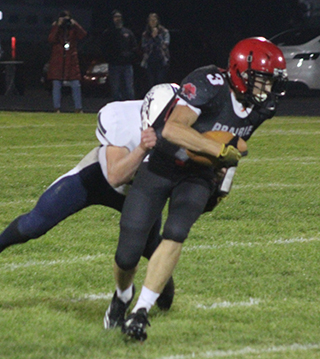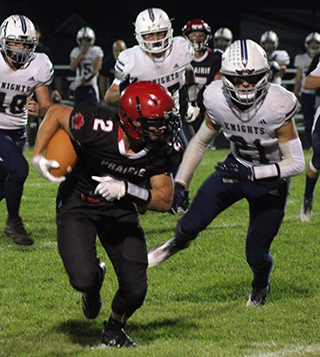 Pirates swamped by Logos The Prairie football team was overwhelmed by Logos 12-54 Friday, Sept. 26 at Cottonwood. Similar to last year’s game at Moscow, Prairie was able to score first then Logos took over. ![]() Prairie received the opening kickoff and started at their own 17. They were able to pick up a couple of first downs thanks to encroachment penalties by the Knights. Levi Gehring gained 8 on the first play from scrimmage and Logos jumped offside on the next play. Kade Quintal picked up 7 on a second and 10 run and Logos was again offsides on the next play setting up first and 10 at Prairie 42. Quintal passed to Peyton Stamper for 22 yards to move the ball to the Logos 36. After a 4-yard run by Gehring, Quintal passed to Gehring for 14 yards and a first down at the 18. At that point the drivestalled and Prairie turned the ball over on downs at the Logos 18. On the Knights second play from scrimmage, they turned the ball over on a fumble with Ashton Martin recovering at the Logos 33. Gehring picked up 2 yards on the next play but was hit after going out of bounds resulting in a 15 yard penalty that moved the ball to the 16. Two plays net just 1 yard then Quintal connected with Levi McElroy for 9 yards and a first down at the 6. On the next play Chris Schumacher went up the middle for 6 yards and the game’s first touchdown. The 2-point run was stopped short as Prairie took a 6-0 lead. Logos returned the kickoff 23 yards to their own 43. On the next play quarterback Joseph Sensing broke through for a 57 yard scoring run. Schumacher intercepted the 2-point pass leaving the score at 6-6. Prairie was forced to pun after 3 pass plays on their next possession after starting on their own 13. Logos took over at the Prairie 37 after the punt. They needed just 4 plays to score the go-ahead touchdown with Sensing passing to Ole Sundlie for the final 26 yards. They added the 2-pointer for a 6-14 lead. Prairie started their next possession at their 27. On the kickoff return Gehring turned his ankle and was hobbled the rest of the game. He sat out the ensuing offensive series. On third and 9 Quintal connected with McElroy for 32 yards to moved the ball to the Logos 40. The next 4 plays netted just 3 yards as Prairie turned the ball over on downs at the Logos 37. The Knights need just 1 play to score again. Sensing again connected with Sundlie down the left sideline for 63 yards. Prairie stopped the 2-point run but now trailed 6-20. Prairie picked up a couple of first downs on their next possession. The first came on a defensive holding penalty on second and 12. On the next play Quintal connected with Stamper for 10 yards and another first down. On fourth and 7 from the Logos 40, Quintal’s pass was intercepted by Logos at the 19. Logos took 8 plays to go 81 yards for another touchdown with Sensing passing to Gideon Haney for the final 25 yards. The 2-point pass failed as Logos took a 6-26 lead. Prairie started their next possession on their own 17. Quintal passed to Schumacher for 17 and then to Cooper Riener for 8 yards. On fourth and 1 at the 43, Quintal’s pass fell incomplete as Logos took over on downs. The Knights need 6 plays to added another touchdown with Honour Mallery going in from the 4. The 2-point pass was good for a 6-34 lead. On the ensuing kickoff, Riener returned the ball 18 yards to the 32 but fumbled and Logos recovered at the Prairie 32. They need just 5 plays to added another touchdown as time ran out in the half. Sensing went in from the 4 and then Logos added the 2-pointer for a 6-42 halftime lead. Logos then received the second half kickoff and started at their own 42. 5 plays later Sensing passed to Baxter Covington for 20 yards and another touchdown. McElroy tackled the runner short of the goal line on the 2-point try but Logos now led 6-48. That meant the rest of the game would be played with a running clock. Prairie took over after the kickoff on their own 27. A 13 yard pass from Quintal to Schumacher moved the ball to the 38. A 9 yard completion to McElroy and a 4 yard run by Quintal led to another first down. Defensive holding moved the ball to the Logos 39. Quintal passed to McElroy for 14 yards and another first down. After 2 plays netted 0 yards, Quintal completed a screen pass to Riener for 9 yards to set up fourth and 1. Quintal then picked up the first down on a sneak to the 15. On fourth and 13 from the 18, Quintal was able to connected with McElroy for 18 yards and a touchdown. The 2-point pass failed leaving Prairie trailing 12-48. Logos took over after the kickoff on their own 46 and needed just 1 play to score again. Sensing passed to Miles Miller for 54 yards. Schumacher stopped the 2-point run short of the goal line but Logos now led 12-54 with 9:43 to play. Prairie put together another drive with McElroy completing a pass to Gehring on fourth and 11 on a fake punt play for 20 yards. A pass from Quintal to Schumacher for 8 and a 3 yard run by Quintal moved the ball to the Prairie 47. A defensive holding penalty on 2nd and 15 gave Prairie another first down at the Logos 48. A pass play lost 2 yards then Quintal was sacked for a loss as time ran out. Prairie’s running game was shut down by the Knights as they gained just 33 yards on 19 attempts. Gehring had 12 yards on 4 carries, all in the first quarter. Quintal completed 24 for 39 passes with 1 interception for 213 yards. McElroy was 1 for 1 for 20 yards. McElroy caught 8 passes for 79 yards. Schumacher caught 8 passes for 52 yards. Gehring caught 4 for 34 yards. Riener caught 3 for 15 yards and Stamper caught 2 for 32 yards. Logos gained 238 yards rushing on 24 attempts led by Sensing who had 110 yards on 13 carries. Sensing also completed 7 of 9 passes for 230 yards. Sundlie was the leading receiver with 89 yards on 2 catches. Defensively Schumacher had 4 solo and 6 assisted tackles plus an intercepted 2-point pass. Quintal had 3 solo and 3 assisted tackles. Lane Mader had 8 assists and 1 sack