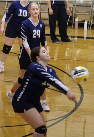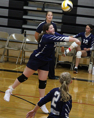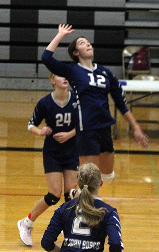 Lady Patriots win at Highland The St. John Bosco Lady Patriots picked up a league win at Highland Monday, Sept. 22 by set scores of 25-18, 16-25, 25-23, 25-20. ![]() Highland scored the first point then missed a serve. Miah Mager then served 6 straight for a 7-1 lead as Savannah Perrin scored 5 straight kills before Mager served an ace to make it 7-1. 5 of the next 6 points were sideouts with a kill by Madeline Wassmuth being the only point scored while serving. Catherine Beckman scored a kill to make it 11-5 then Catherine Seubert served an ace for a 12-5 lead. After 2 sideouts, Beckman served an ace to make it 14-6. Highland scored later on to cut the lead to 17-10 but on that played Perrin rolled her ankle and had to be helped off the floor. The Patriots were able to build a 23-13 lead but then saw Highland score 4 straight before Cece Remacle score a kill to get to set point at 24-17. A net violation gave Highland back the serve but a hitting error by the Huskies gave St. John Bosco the win. In the second set the Patriots had to shuffle their lineup as they moved Seubert to Perrin’s middle blocker position and put Maggie Black into Seubert’s usual spot. The Patriots were able to take early 4-3 and 5-4 leads. Highland scored 3 straight to take a 5-7 lead but Bosco fought back and led 11-9 after 2 aces by Wassmuth. At 12-10 Highland scored a sideout and added 5 more points to take a 12-16 lead. The Patriots were unable to get any closer than 2 at 14-16, the rest of the set as Highland evened the match at 1 set each. After getting her ankle taped and trying to walk off the injury, Perrin was able to return to the lineup for the third set. Highland took the early lead but a kill by Wassmuth tied it at 4-4 and Perrin then served 4 straight, 3 of them aces, for an 8-4 lead. Highland answered with 5 straight to retake the lead and after Wassmuth scored a kill to tie it at 9, Highland scored a sideout and built a 12-16 lead. A kill by Perrin ended their run and Mager then served the Patriots back into the lead. 3 straight kills by Perrin and an ace by Mager made it 17-16. Highland again answered and took back the lead. The Patriots tied it at 19 and 20 but each time Highland answered. A bad serve by Highland tied it at 21 and Seubert then served an ace to put the Patriots on top. Highland scored 2 straight but Mager scored a kill to tie it at 23 and Beckman then served 2 aces to give the Patriots the set and a 2 sets to 1 lead. In the fourth set Highland bricked the opening serve and Remacle then served 2 aces for a 3-0 lead. After a sideout put Highland on the board, Perrin scored a sideout kill and Mager served 2 aces for a 6-1 lead. Highland scored another sideout but a kill by Perrin sent her to the service line for 4 straight and an 11-2 lead. Remacle, Seubert, Beckman and Wassmuth each scored a kill in that run. Highland then scored 9 of the next 10 points to cut their deficit to 12-11. A back row kill by Mager and a kill by Beckman made it 14-11. The lead stayed between 2 and 3 points until Highland scored to pull within 1 at 19-18. Beckman and Seubert each scored a kill to push the lead back to 3 at 21-18. At 22-20, Seubert scored a kill on a bump and Beckman then served out the match. She served an ace to get to match point and Perrin then scored the match-winning kill. Despite missing more than a set of play, Perrin wound up lading the team in kills with 18 and added 5 aces. Seubert had 9 kill and 4 aces. Wassmuth had 7 kills, 13 assists and 2 aces. Remacle had 4 kills, 24 assists and 3 aces. Mager had 4 kills, 2 assist and 6 aces. Beckman had 4 kills, 2 assists and 4 aces. Black had 2 kills and 1 ace. With the win the Patriots improve to 2-6 overall and 2-5 in league play. The JV teams split their two games 25-22, 18-25. The Patriots took a 7-4 lead on an ace by Anna Mae Cummings. Highland then responded with 4 straight to take the lead. Highland led 9-14 when they missed a serve Wassmuth then served 3 straight including 2 aces to cut the lead to 13-14. Bosco was able to tie the game at 16, 19, 20 and 21 but each time Highland would retake the lead. Finally Highland bricked a serve to make it 22-22 and Wassmuth then served out the set. Beckman scored a kill, Wassmuth served an ace and Cummings then scored the set winning kill. In the second set Bosco led 6-4 after 2 aces by Beckman but then Highland scored 5 straight points to take the lead. Bosco got within 1 on an ace by Cummings but Highland then scored 4 straight to take a 5 points lead at 8-13. Bosco was unable to get any closer than 2 at 12-14 the rest of the way. Their final push got them within 2 at 18-21 after an ace by Beckman but Highland then scored a sideout and served out the set. Due to limited numbers for the Patriots they did not play a tie-breaking set. ![]() Catherine Seubert spikes the ball against Highland. ![]() Cece Remacle passes the ball. Also shown are Catherine Seubert and Miah Mager. ![]() Madeline Wassmuth sets the ball at Highland. Also shown are Catherine Seubert, Cece Remacle, Miah Mager and Catherine Beckman. ![]() Miah Mager passes the ball. Also shown is Madeline Wassmuth. ![]() Savannah Perrin goes for a spike at Highland. Also shown are Catherine Seubert and Madeline Wassmuth.