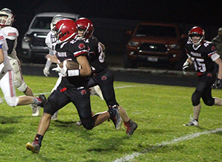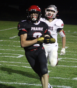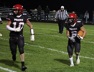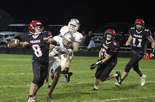 Pirates win big over C.V. The Prairie Football Team won big at their Homecoming Game Friday, Oct. 2 as they defeated Clearwater Valley by a score of 56-6. ![]() C.V. received the opening kickoff and went backwards as Trajan Elven tackled Pete Fabbi for a 2 yard loss and on the next play Lane Mader tackled quarterback Kale Walle for an 8 yard loss. That forced a punt and Prairie took over after a 21 yard return by Levi McElroy at the CV 40 yard line. On second and 10, Chris Schumacher picked up 14 yards for a first down. Payton Stamper then picked up a total of 8 yards on 2 carries and Schumacher picked up another first down at the 15. On third and 7 from the 12, quarterback Kade Quintal tossed a screen pass to the left to Schumacher who went into the end zone for the game’s first points. Quintal then passed to Elven for the 2-pointer to make it 8-0. C.V. picked up a couple of first downs on their next possession as they moved the ball to the Prairie 42. Three consecutive tackles for loss, the third a 12 yard loss on a sack of Walle, pushed C.V. back to their own 40. McElroy returned the punt 15 yards to the Prairie 45. Prairie wound up turning the ball back over to the Rams when they came up short on fourth down at the C.V. 48. C.V. had 2 incomplete passes and a 2 yard loss and punted back to the Pirates. The Pirates took over on their own 28. Stamper picked up 8 yards total on 2 carries and Schumacher gained 4 for a first down. On second and 11, Quintal connected with Cooper Riener for 38 yards to the C.V. 23. Levi Gehring, who didn’t start because his ankle was still tender from injuring it a week earlier against Logos, picked up 10 yards to the 13 for a second down and inches. Schumacher picked up the first down with a 3 yard gain to set up first and goal at the 10. Quintal was sacked for a 17 yard loss on the next play but connected with McElroy for 9 yards and Gehring for 17 yards to set up fourth and goal at the 1. Quintal ran a quarterback sneak for the touchdown. The 2-point run was stopped short leaving the Pirates with a 14-0 lead. C.V. picked up a first down on their next possession but the drive was stopped when Quintal intercepted a Walle pass at the Prairie 25 and returned it to the 38. Prairie turned the ball back over on downs at the 37 after consecutive 5 yard losses. C.V. also turned the back over on downs and a run for no gain and 3 incomplete passes. Quintal passed to McElroy for 8 yards and a C.V. encroachment penalty gave Prairie a first down. Quintal passed to McElory again for 13 yards to move the ball to the C.V. 37. Quintal ran the ball for 8 yards and 15 was added to it as C.V. was called for a facemask penalty on the play. On the next play Quintal passed to Schumacher for 16 yards and a touchdown. The 2-point pass fell incomplete as Prairie now led 20-0. C.V. took over after the kickoff at their own 26. On second and 15, Walle’s pass was intercepted by Schumacher at the C.V. 29. Schumacher took the ball to the end zone to put Prairie up 26-0 as the 2-point pass again failed. C.V. came right back with the pass and put together their only scoring drive of the game. Walle completed 3 straight passes to Connor Christensen for 46, 14 and 6 yards to put the Rams at the 5 yard line. Walle then passed to Fabbi for the touchdown. Their 2-point try failed making it 26-6 with 25 seconds left in the half. C.V.’s onside kickoff was picked up by Stamper who returned it 12 yards to the C.V. 43. However Quintal’s pass was intercepted on the next play at the C.V. 13. C.V. tried one deep pass to Christensen that was well defended by Schumacher for an incompletion. They then ran out the half. Prairie received the second half kickoff and started at their 20 after a touchback. A false start set them back to the 15. Schumacher picked up 6 yards and on third and 9 from the 21, Quintal passed to Stamper for 36 yards down the right side. On the next play Quintal passed to a wide open Riener who went 43 yards for the touchdown. The 2-point run was stopped short and Prairie now led 32-6. C.V. looked to score again as they completed passes for 30 and 20 yards and had a first and goal at the 5 yard line. After a 2 yard loss on a run and 3 incomplete passes, Prairie took over at the 7. An encroachment penalty moved them to the 12. Gehring picked up 16 yards to the 28 and on the next play Schumacher burst through the middle and outraced the defense for a 72 yard scoring run. Ben Secrest ran in the 2-pointer to make it 40-6. C.V.