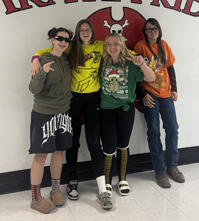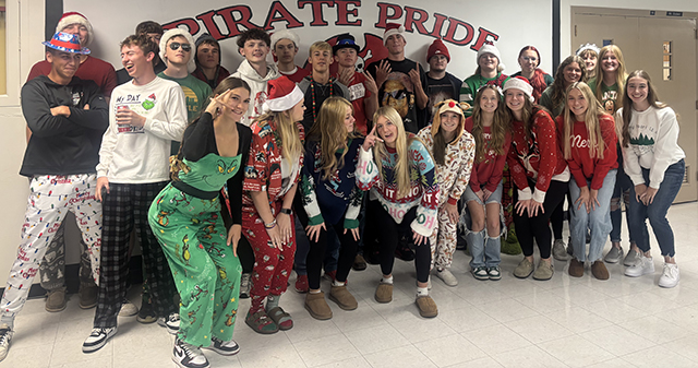 The senior class on mismatch day, holiday theme day (Christmas), swap day and spirit day.