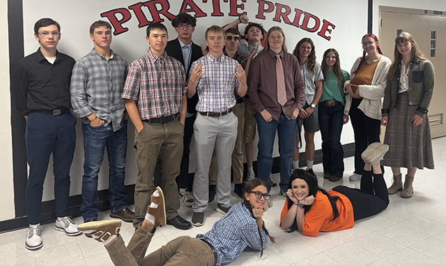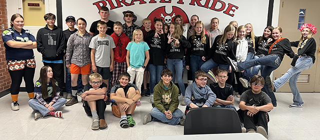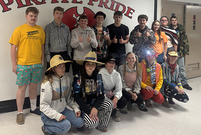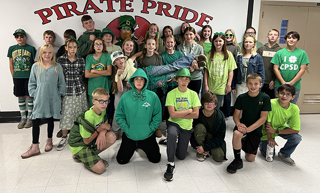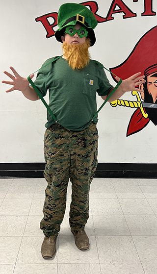 Junior High students on mismatch day, holiday theme day (St. Patrick's Day), Hank Harman's leprechaun outfit, and swap day. All dress-up photos by Matt Elven.