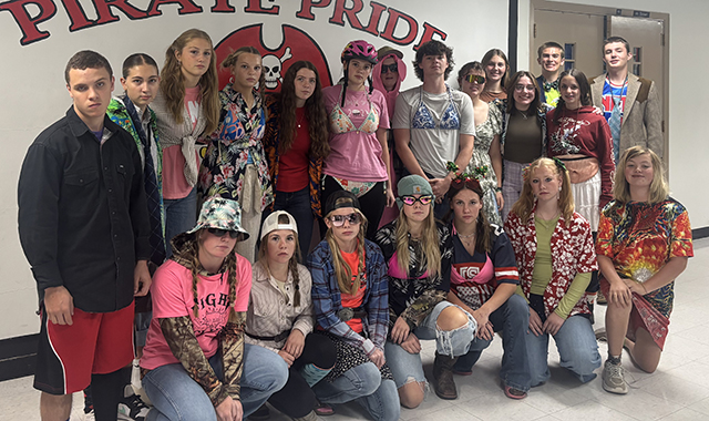 The junior class on mismatch day, holiday theme day (4th of July), swap day and spirit day.