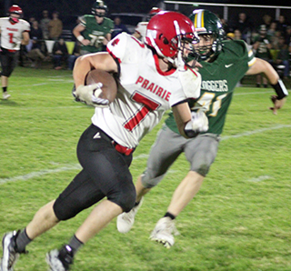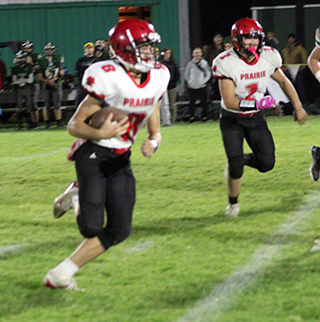 Pirates win big 58-38 at Potlatch The Prairie football team traveled to Potlatch Friday, Oct. 10 and defeated the Loggers 58-38. If they weren’t in already, the win likely clinched a state playoff berth with possibly a first round home game. ![]() The opening kickoff left Prairie starting on offense from their own 11 yard line. On second and 4, Chris Schumacher picked up 21 yards around right end for a first down. On second and 8 from their own 40, Levi Gehring carried the ball to the left side and raced 60 yards to the end zone for the game’s first touchdown. Kade Quintal ran in the 2-pointer for an 8-0 lead. Potlatch answered back by going 66 yards in 9 plays to score their first touchdown on a 2 yard run by Connor Carpenter. Prairie stopped the 2-point run short of the end zone to hold on to the lead at 8-6. Potlatch squibbed the ensuing kickoff with Schumacher recovering at the Prairie 39. Gehring picked up 7 yards then Quintal passed to Payton Stamper for 9 and a first down. On the next play a holding penalty wiped set the Pirates back to their own 45. However Quintal connected with Stamper down the left side for 33 yards and a first down at the Potlatch 22. Prairie then ran the ball on 5 straight plays with the final one being an 8 yard sweep to the left by Gehring for his second touchdown of the game. Quintal then passed to Lane Mader for the 2-point conversion to give Prairie a 16-6 lead. Potlatch again answered back with a 9-play, 70 yard drive that ended with a 17 yard pass from quarterback Jay Marshall to Trey Magallon. Those same two hooked up for the 2-point conversion to put Prairie’s lead to 16-14. Prairie started their next possession at their own 40 after an 11 yard return by Cooper Riener. On the first play of the possession Quintal connected with Levi McElroy for 35 yards to the Potlatch 25. After a 1 yard run, Quintal tossed a short pass to the left to Schumacher who took the ball 24 yards to the end zone. Quintal then passed to Gehring for the 2-pointer for a 24-14 lead. Potlatch’s next possession started at their own 26 after a holding penalty on the kickoff return. It took Potlatch 5 plays to move the ball to their own 48. On the next play they ran a reverse to Magallon who went 52 yards down the left sideline to the end zone. Riener tackled the runner short of the end zone on the 2-point try leaving the score at 24-20. To this point neither defense had slowed down, much less stopped the other team’s offense. Prairie had a holding penalty on their kickoff return as they started at their own 30. A 16 yard pass to Gehring and a 26 yard keeper by Quintal moved the ball to the Potlatch 28. At that point the offense started to sputter. Quintal was sacked for a 10 yard loss and on the next play his pass was intercepted by Carpenter at the Logger 33 and returned to the 47. However the Prairie defense had their best series as they force Potlatch to punt from the 47 after gaining nothing in 3 plays. Prairie took over at their own 22 and a 36 yard pass to McElroy moved the ball to the Potlatch 30. On fourth and 12 at the 32, Quintal was intercepted again by Carpenter. However on the next play Gehring intercepted Marshall’s pass at the Prairie 45. With under 20 seconds left in the half Quintal passed to a wide open Gehring in a crossing pattern. Gehring managed to take the ball and broke a couple of tackles and jumped over another Logger on his way to the end zone for a 55 yard scoring play. Gehring then ran in the 2 pointer to give Prairie a 32-20 lead with 2.5 seconds left in the half. Potlatch received the second half kickoff and a holding penalty on their first play forced them to punt the ball from their own 33. Prairie took over at their own 40 after a 5 yard return by Gehring. Quintal completed a screen pass to the left to Schumacher who went 34 yards to the 6 yard line. Gehring scored on the next play for his fourth touchdown of the game. For the first time in the game, Prairie came up short on the 2-point try but now led 38-20. On Potlatch’s next possession, the Loggers went for it on fourth and 6 from their own 37 and Marshall was sacked for a 10 yard loss by Mader. Prairie took over on the Potlatch 27 and 4 plays later Quintal passed to Schumacher for a 10 yard touchdown. Gehring appeared to score the 2-pointer but Prairie was called for holding and Quintal’s pass from the 13 fell incomplete. Prairie now led 44-20. Potlatch showed they weren’t done though as Marshall passed to Magallon for 61 yards and a touchdown on their next possession. The Loggers then recovered an onside kick at the Prairie 45 and Marshall connected with Magallon for another touchdown on the next play. Potlatch was unable to score the 2-pointer either time but now trailed just 44-32. Trajan Elven recovered another onside kick attempt by the Loggers at the Prairie 48. 2 runs by Gehring netted 11 yards and a first down. A holding penalty was called on the next play but a 23 yard pass from Quintal to McElroy converted another first