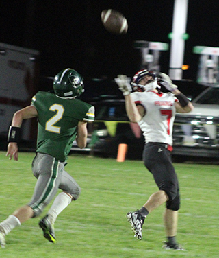 On Potlatch’s next possession, Mader picked up his second sack of the game on third and 9, costing the Loggers 8 yards and forcing a punt. Magallon was hurt on the punt play and wound up missing the rest of the game. Quintal picked up 6 yards and Gehring followed with a 5 yard run for a first down at the Logger 26. Gehring appeared to have scored on the next play but a holding penalty negated the score and set Prairie back to the 34. Quintal passed to Gehring for 19 yards to the 15. A keeper by Quintal moved the ball to the 10 and Schumacher carried to the right side for 10 yards and a touchdown. The 2 point pass failed but Prairie was now up 58-32 with 11:21 left to play. Potlatch answered back with a 5-play 60-yard scoring drive to pull within 20 again at 58-38. Marshall scored on a 27 yard run. Potlatch again recovered an onside kick at the Prairie 49. The Loggers moved the ball down to the Prairie 13 thanks in large part to 23 yards worth of penalties against Prairie. At the 13 Prairie forced a fumble with Schumacher recovering at the 12. Prairie went for it on fourth and 3 from the 19 and completed a 40 yard pass to Schumacher. 3 plays later a 27 yard completion to Schumacher moved the ball to the Potlatch 13. A quarterback sneak for 3 yards on third and 2 set up a first and goal at the 3. However that first down enabled Prairie to run out the clock on a couple of kneel downs. Gehring had a huge game for the Pirates with 145 yards rushing on 19 carries and 90 yards pass receiving on 3 catches with 5 touchdowns. Schumacher also had a big game with 121 yards receiving on 6 catches and 36 yards rushing on 8 carries with 3 touchdowns. Prairie had 209 yards rushing on 39 attempts. Quintal completed 18 of 25 passes with 2 interceptions for 375 yards. The 584 yards of offense was Prairie’s best output of the year. McElroy caught 5 passes for 104 yards, Stamper 3 for 51 and Riener 1 for 9 yards. Potlatch had 210 yards rushing on 37 attempts led by Marshall who had 102 yards on 23 carries. Marshall completed 7 of 19 passes with 1 interception for 167 yards. Magallon caught 4 passes for 136 yards. On defense Schumacher had 4 solo tackles, 12 assists, 1 interception and 1 fumble recovery. Stamper had 6 solos and 5 assists. Elven had 4 solos and 7 assists. Mader had 3 solos, 6 assists and 2 sacks. Ashton Martin had 3 solos and 7 assists. Gehring had 2 solos, 7 assists and 1 interception. McElroy had 1 solo and 4 assists. Ben Secrest had 5 assists. Riener and Quintal each had 1 solo and 1 assist. Prairie is now 5-2 on the season and 3-2 in league play. Their next game is Senior Night this Friday at 7 p.m. against Troy. Prairie 16 16 20 6 -58 Potlatch 6 14 12 6 -38 Pr.-Gehring 60 run (Quintal run) 10:52 1st Po.-Carpenter 2 run (run failed) 6:03 1st Pr.-Gehring 8 run (Mader pass from Quintal) 2:44 1st Po.-Magallon 17 pass from Marshall (Magallon pass from Marshall) 10:37 2nd Pr.-Schumacher 24 pass from Quintal (Gehring pass from Quintal) 9:32 2nd Po.-Magallon 52 run (run failed) 6:47 2nd Pr.-Gehring 55 pass from Quintal (Gehring run) 0:02.5 2nd Pr.-Gehring 6 run (run failed) 9:47 3rd Pr.-Schumacher 10 pass from Quintal (pass failed) 6:07 3rd Po.-Magallon 61 pass from Marshall (run failed) 5:41 3rd Po.-Magallon 45 pass from Marshall (pass failed) 5:29 3rd Pr.-Gehring 5 run (Stamper pass from Quintal) 3:27 3rd Pr.-Schumacher 10 run (pass failed) 11:21 4th Po.-Marshall 27 run (pass failed) 8:58 4th ![]() Chris Schumacher tackles Potlatch’s quarterback high while Lane Mader goes low while Ashton Martin moves in. ![]() Payton Stamper looks up for the ball as he makes a catch against Potlatch. ![]() Levi McElroy runs with the ball after making a catch. Shown upper left is Lane Mader. ![]() Kade Quintal runs with the ball on this play. Also shwon is Lane Mader. ![]() Chris Schumacher gains big yardage after catching a pass. ![]() Lane Mader and Chris Schumacher along with another unidentified Prairie player gang-tackle a Potlatch ballcarrier. ![]() Levi McElroy waits for the ball as he got behind the defense on this pass play. PIRATES BOYS FOOTBALL SCHEDULE FOR 2025