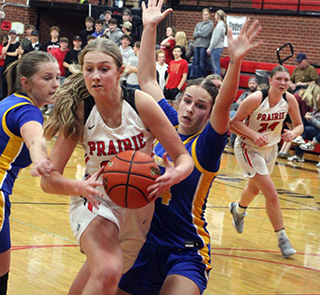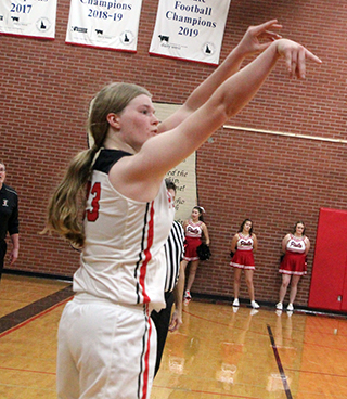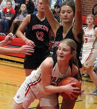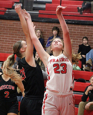 with a 3-point play. 20 seconds later she added a putback. Sage Elven made 2 free throws and Kylie added another putback. Hailey Hanson sank a 3 to make it 12-0 with 3:36 left in the opening quarter. ![]() Nezperce got on the scoreboard with a pair of free throws then Prairie closed out the quarter with a lay-up by Elven on an inbounds play and a free throw by Beka Schumacher for a 15-2 lead at the quarter break. Nezperce scored their first basket of the game to open the second quarter and Beka Schumacher answered with a shot in the lane. After another basket by Nezperce, Prairie went on a 9-0 run. Sydney Shears scored a lay-up. Erica Schlader scored in transition after a steal by Hanson. Hanson then drove for a lay-up and Kylie Schumacher sank a 3 to make it 26-6 with 5:21 left in the half. Nezperce managed to outscore Prairie 5-7 the rest of the half as Prairie got a lay-up from Kylie Schumacher and a 3 from Elven. Prairie led 31-13 at the half. Prairie opened the second half scoring with a putback by Kylie Schumacher and a basket on an inbounds play by Shears. Nezperce then put a mini-rally together, out scoring Prairie 2-7 with a putback by Elven being Prairie’s points. Prairie still led 37-20 then outscored Nezperce 8-4 with Kylie Schumacher scoring 6 of those 8 and Elven the other 2 for a 45-24 lead. Nezperce then scored the final 5 points of the quarter to cut Prairie’s lead to 45-39 after 3 quarters. A 3 by Nezperce opened the fourth quarter then the Pirates put together an 8-0 run. Beka Schumacher started it with a lay-up. A basket and then a 3 by Elven followed with Kylie Schumacher finishing the run with a free throw that made it 53-32 with 3:01 left in the game. Nezperce then scored the final 3 points. Kylie Schumacher scored 21 to lead the Pirates in scoring with Elven adding 16. Hanson and Beka Schumacher scoring 5 each with Shears scoring 4 and Erica Schlader 2. Prairie had a 31-23 edge on the boards with Kylie Schumacher making it a double-double with 10 boards. Shears and Hanson added 6 rebounds each. Elven had 4 steals while Shears and Hanson had 3 steal each and 4 assists each. Prairie was 22 for 44 from the field, 50%, and 5 for 16 at the line, 31%. Nezperce was 11 for 34 from the field, 32%, and 11 for 19 at the line, 58%. Prairie also won the 2-quarter JV game 39-17. Reagan Brannan got off to a hot start with 10 of Prairie first 12 points as they took a 12-2 lead. She started things with a 3. Nezperce scored then Prairie scored 9 straight. Kennedy Riener had a basket then Brannan scored the next 7 on a basket, a three and another basket. Each team added 4 points to close out the first quarter with Prairie up 16-6. Zoey Behler and Riener each had a basket for Prairie. Nezperce opened the second quarter with a free throw then Prairie scoring 12 straight points. Brannan, Riener and Alli Rambo each scored a basket then Tori Shears and Capri Hagen each scored a 3 for a 28-7 lead with 5:13 to play. Nezperce scored 4 straight then Prairie went on an 11-4 run. Blake Uhlenkott scored a free throw then Bekah Shears hit a 3. Hagen scored a putback to make it 34-11. After a Nezperce basket, Riener hit a 3. After another Nezperce basket, Lillian Rehder made a basket to make it 39-15 with 1:08 to play. Nezperce added a final basket. Brannan wound leading Prairie in both scoring and rebounding with 12 points and 5 boards. Riener scored 9 while Hagen scored 5. Tori and Bekah Shears scored 3 reach while Behler, Rehder and Rambo scored 2 each and Uhlenkott scored 1. Prairie outrebounded Nezperce 17-9. Riener and Behler each had 3 steals and Uhlenkott had 3 assists. The JV’s were 16 for 28 from the field, 57%, and 1 for 6 at the line, 17%. Nezperce was 8 for 17 from the field, 47%, and 1 for 4 at the line, 25%. Prairie 15 16 14 8 -53 Nezperce 2 11 16 6 -35 Prairie-Shears 2-5, 0-4, 4; Hanson 2-4, 0-0, 5; Schlader 1-5, 0-3, 2; Elven 6-11, 2-2, 16; K. Schumacher 9-13, 2-3, 21; B. Schumacher 2-6, 1-4, 5; Rowland 0-0, 0-0, 0; Brannan 0-0, 0-0, 0; Rehder 0-0, 0-0, 0; Cash 0-0, 0-0, 0. 3-pointers-Elven 2, Hanson, K. Schumacher. Nezperce-Ralstin 1-4, 3-5, 5; Lux 3-7, 4-4, 10; Wilcox 4-11, 0-2, 10; A. Duuck 1-3, 0-2, 2; Kirkland 1-4, 1-2, 3; Grant 0-2, 0-0, 0; Jensen 0-0, 2-2, 2; E. Duuck 1-2, 1-2, 3. 3-pointers-Wilcox 2. Vs. Moscow The game against Moscow was a back and forth battle.Moscow won the tap and scored the game’s first basket. Prairie came back and tied it with a basket by Schlader. Prairie then took their first lead on a pair of free throws by Shears. Moscow then scored 6 straight to retake the lead. Prairie then put together their own run. Elven scored a free throw. Shears drove for a lay-up and then made a steal that led to a lay-up by Elven that put Prairie back on top. Elven added a free throw and Schlader scored after another steal by Shears to make it 12-8. After a basket by Moscow, Beka Schumacher scored a putback and Elven drove full-court for a lay-up to give Prairie a 16-10 lead at the end of the first quarter. Moscow outscored Prairie 3-8 in the first 2:30 of the second quarter to cut the lead to just 1 at 19-18. Prairie’s only points came on a free throw and a basket by Beka Schumacher. Prairie then pushed the lead back to 6 on a back-door lay-up by Elven and a 3 by Kylie Schumacher. After a basket by Moscow, Beka Schumacher scored again to make it 26-20 with 1:46 to play in the half. Moscow then scored the final 7 points of the half to take a 26-27 halftime lead. Prairie took back the lead with a 3 by Elven to open the third quarter. Shears followed with a lay-up on a feed from Schlader who had grabbed an offensive rebound. Moscow scored then Kyle Schumacher and Schlader each scored for a 35-29 lead. After a Moscow basket, Elven scored with 8 seconds left in the quarter. Moscow rushed the ball up the court and scored to make it 37-32 after 3 quarters. Beka Schumacher opened the fourth quarter by making 2 of 4 free throws. Moscow responded with a 2 and a 3 to 