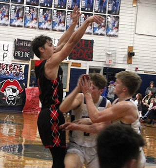 The Prairie Pirates picked up a pair of road wins this week. On Friday, Dec. 5 they won 67-38at Grangeville in the Idaho County Shootout. On Monday, Dec. 8, they traveled to Deary and won 56-23. At Grangeville Nate Forsmann scored a pair of baskets to get the Pirates started. Riley Shears followed with 2 free throws and a 3 to make it 9-0. Phil Schwartz stole the ball and scored to make it 11-0.![]() Grangeville finally scored with 4:58 left in the quarter. Prairie answered with another 7 straight points. Patrick Schlader scored a 3 and then converted a 3-point play to make it 17-2. Max Rehder scored a free throw to make it 18-2. Grangeville scored again with 2 free throws and Shears answered with 2 from the stripe. After 2 more Grangeville free throws, Schlader scored a free through and Chase VonBargen scored after a steal by Levi Gehring to make it 23-6. Grangeville added 3 more free throws to close out the first quarter with Prairie up 23-9. Prairie opened the second quarter with an 18-2 run. Schlader and Forsmann each scored then Grangeville scored. 4 of Prairie’s next 5 baskets were 3 points as they built a 41-11 lead. Schwartz had a pair of 3’s while VonBargen and Shears added 1 each. Shears also added a 2-pointer in the run. Grangeville then scored the final 6 points of the half to make it 41-17 at the break. Prairie opened the third quarter with an 11-4 run to take a 52-21 lead. Forsmann scored 6 of those on lay-ups with Gehring adding a 2 and then a 3 to cap it. Grangeville then put together their only rally of the game as they out scored Prairie 2-9 over the next 2:30 of the quarter. Forsmann scored the only basket for Prairie in that run. Schlader and Forsmann each scored late in the quarter to give Prairie a 58-31 lead. Grangeville opened the fourth quarter with a basket then Forsmann scored 2 lay-ups. After another Grangeville score, Schwartz hit his third 3 of the game and Forsmann added another lay-up to make it 67-35. Grangeville then scored the final 3 points of the game. Forsmann led all scorers with 22 points and at one point made 9 shots in a row and was 11 for 13 for the game. Shears scored 12 while Schwartz and Schlader added 11 each. Gehring and VonBargen scored 5 each and Rehder scored 1. Prairie dominated on the boards 42-22. Schlader had 13 rebounds and Forsmann had 10. Gehring had 4 steals and 4 assists while Schwartz had 3 steals and Schlader had 4 assists. Prairie was 26 for 53 from the field, 49%. They were 12 for 16 in the second half, 75%. The Pirates were 7 for 9 at the line, 78%. Grangeville was 10 for 41 from the field, 24%, and 17 for 29 at the line, 59%. On Wednesday, Dec. 3, the C team beat Grangeville 45-14 and the JV team beat the Bulldogs 61-28. Prairie 23 18 17 9 -67 Grangeville 9 8 14 7 -38 Prairie-Gehring 2-4, 0-0, 5; Shears 3-6, 4-4, 12; Schwartz 4-6, 0-1, 11; Schlader 4-14, 2-3, 11; Forsmann 11-13, 0-0, 22; VonBargen 2-4, 0-0, 5; Rehder 0-3, 1-2, 1; Quintal 0-2, 0-0, 0; Enneking 0-1, 0-0, 0; Armbrust 0-0, 0-0, 0. 3-pointers-Schwartz 3, Shears 2, Gehring, VonBargen, Schlader. Grangeville-Schumacher 2-5, 5-6, 10; Stamper 2-10, 2-3, 6; Long 2-3, 0-2, 4; Wilcoxen 1-11, 4-6, 6; Smith 2-5, 0-0, 4; Told 0-6, 3-8, 3; Blewitt 0-0, 3-4, 3; MacGregor 1-2, 0-0, 2. 3-pointers-Schumacher. At Deary The game at Deary started