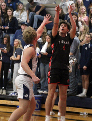 which kicked off a 25-0 run.Schlader tipped in his own missed shot to put Prairie ahead for good and VonBargen closed out the first quarter scoring with a 3 to give Prairie a 10-5 lead. In the second quarter Prairie turned up the defense forcing 15 turnovers from the Mustangs. Many of those turnovers turned into Prairie baskets. In order Prairie got a lay-up by Forsmann after a steal by Gehring. Schlader scored another tip-in. A steal by Forsmann led to a lay-up by Gehring. Another Forsmann steal led to a lay-up by VonBargen. A steal by Shears led to a putback by Forsmann. Shears scored a lay-up. Jackson Enneking stole the ball and that led to him scoring. Forsmann scored a basket and then finished off the run with a free throw for a 27-5 lead. Deary broke the run with a 3-point play at the 2 minute mark of the second quarter. Prairie then scored 5 more points. Forsmann scored a putback and then a free throw and Cade Armbrust made 2 free throws. Deary was fouled as the half ended and scored both free throws to make it 32-10 at the break. Deary scored the first two baskets of the second half then Prairie got a putback by Schwartz, a lay-up by Schlader and a 3 by Schwartz for a 39-14 lead. Deary then scored 5 straight to get back within 20 but Schwartz converted a 3 point play and then passed to VonBargen for a lay-up to make it 44-19 after 3 quarters. Deary scored the first 2 points of the fourth quarter then Prairie went on a 12-0 run to invoke the running clock. VonBargen converted a 3-point play. Forsmann scored a lay-up. Shears scored a short jumper. Schlader made a free throw. Quintal drove for a lay-up and VonBargen scored to make it 56-21 with 1:58 to play. Deary added a basket for the final points. Forsmann led the Pirates in scoring with 14. VonBargen scored a career high 12 points. Schwartz added 8. Shears and Schlader each scored 7. Gehring, Quintal, Enneking and Armbrust each scored 2. Deary had a 22-28 rebounding edge. Schlader and Forsmann each had 5 to lead the Pirates. Most of those were on the offensive end. Forsmann and Gehring each had 5 steals and Forsmann added 5 assists. The Pirates were 23 for 55 from the field, 42%, and 7 for 12 at the line, 58%. Deary was 7 for 22 from the field, 32%, and 8 for 10 at the line, 80%. Prairie is now 2-1 on the season. They play their first league game this Friday against Troy at Cottonwood. Prairie won the JV game 59-42. The Pirates started the game with a 17-0 run. Anthony Forsmann scored 5 of those with Austin Labrum adding 4 and Sam Rehder, Cooper Riener, Phineas Fitch and Isaiah Warren 2 each. Deary finally scored at the 3:27 mark with a free throw. They added a basket then Fitch scored a lay-up. Deary hit a 3 and Forsmann added a lay-up to make it 21-6 at the end of the first quarter. Deary came to life in the second quarter, outscoring Prairie 12-14 to make it 33-20 at the half. Labrum added 6 while Rehder scored 4 and Matt Frei 2 for the Pirates. The starting five returned to the court as a unit in the third quarter and started with a 19-3 run to build a 52-23 lead. Riener scored 8 in the quarter. Rehder added 4, Labrum 3 and Warren and Forsmann 2. In the fourth quarter the subs got most of the playing time and Deary outscored them 7-16 but Prairie still won by 17. Warren scored 4 and Ray Terhaar 3 in the quarter for the Pirates. Labrum wound up as the leading scorer with 13 points. Rehder and Riener scored 10 each. Forsmann scored 9, Warren 8, Fitch 4, Terhaar 3 and Frei 2. Prairie had a 29-28 edge on the boards. Labrum led the Pirates with 6 rebounds. Riener and Labrum had 4 steals each and Rehder had 8 assists. The JV’s were 27 for 53 from the field, 51%, and 5 for 12 at the line, 42%. Deary was 18 for 43 from the field, 42%, and 3 for 13 at the line, 23%. Prairie 10 22 12 12 -56 Deary 5 5 9 4 -23 Prairie-Gehring 1-2, 0-0, 2; Shears 3-9, 0-0, 7; Schwartz 3-7, 1-1, 8; Schlader 3-10, 1-2, 7; Forsmann 6-13, 2-6, 14; VonBargen 5-7, 1-1, 12; Rehder 0-2, 0-0, 0; Quintal 1-4, 0-0, 2; Enneking 1-1, 0-0, 2; Armbrust 0-0, 2-2, 2. 3-pointers-Shears, Schwartz, VonBargen. Deary-Mechlin 0-2, 0-0, 0; Stettler 1-3, 0-0, 2; Jarrett Keen 1-3, 1-3, 4; Clark 0-1, 4-4, 4; Jaymon Keen 3-7, 2-2, 8; Boothby 0-2, 0-0, 0; Heath 1-2, 0-0, 2; Griffin 1-2, 1-1, 3; Bartlett 0-1, 0-0, 0. 3-pointers-Jarrett Keen. ![]() Phil Schwartz puts up a 3-point shot at Grangeville. ![]() Chase VonBargen shootsover a double team at Grangeville. ![]() Patrick Schlader with the ball looks to pass into the post at Grangeville. ![]() Riley Shears shoots for 3 at Grangeville.